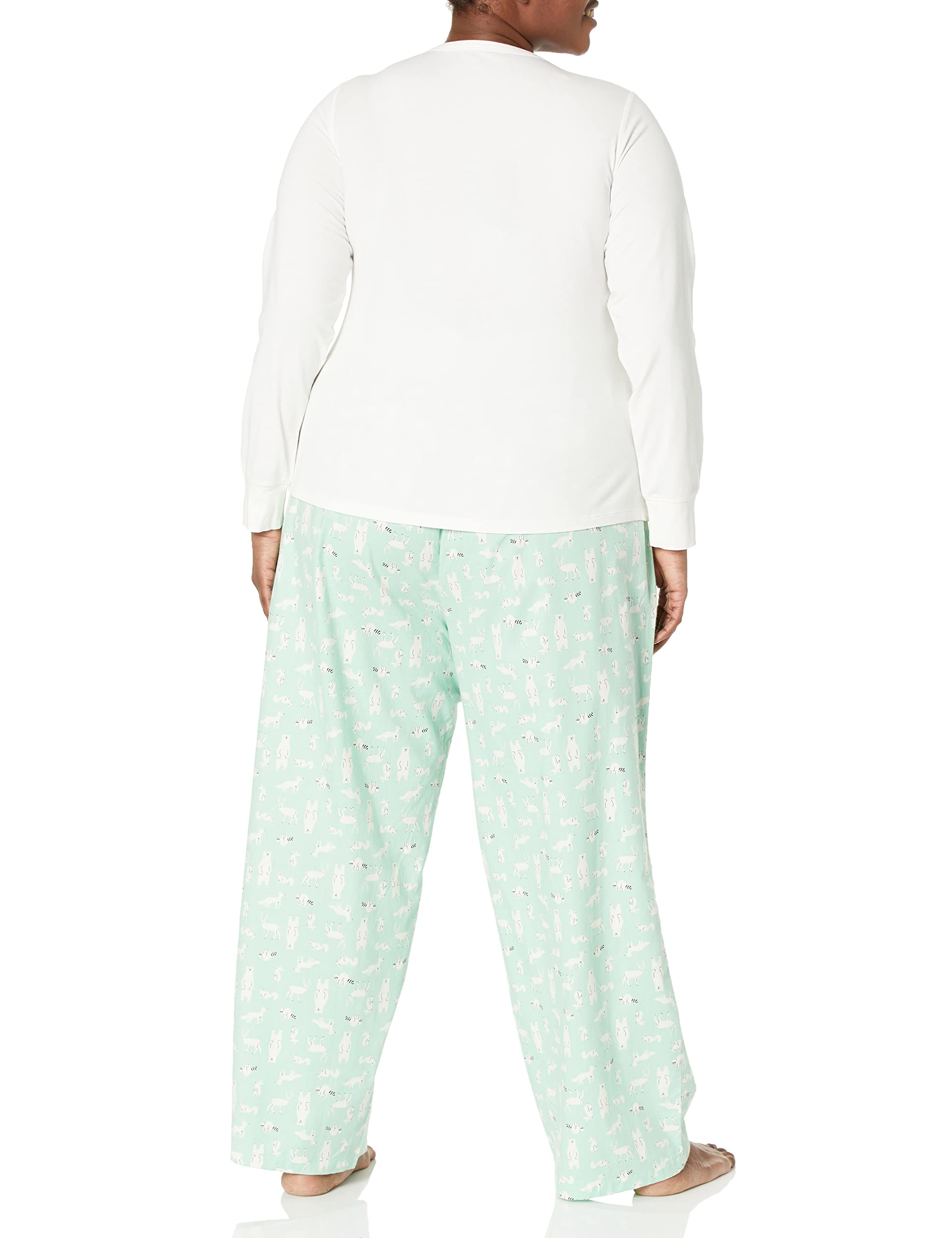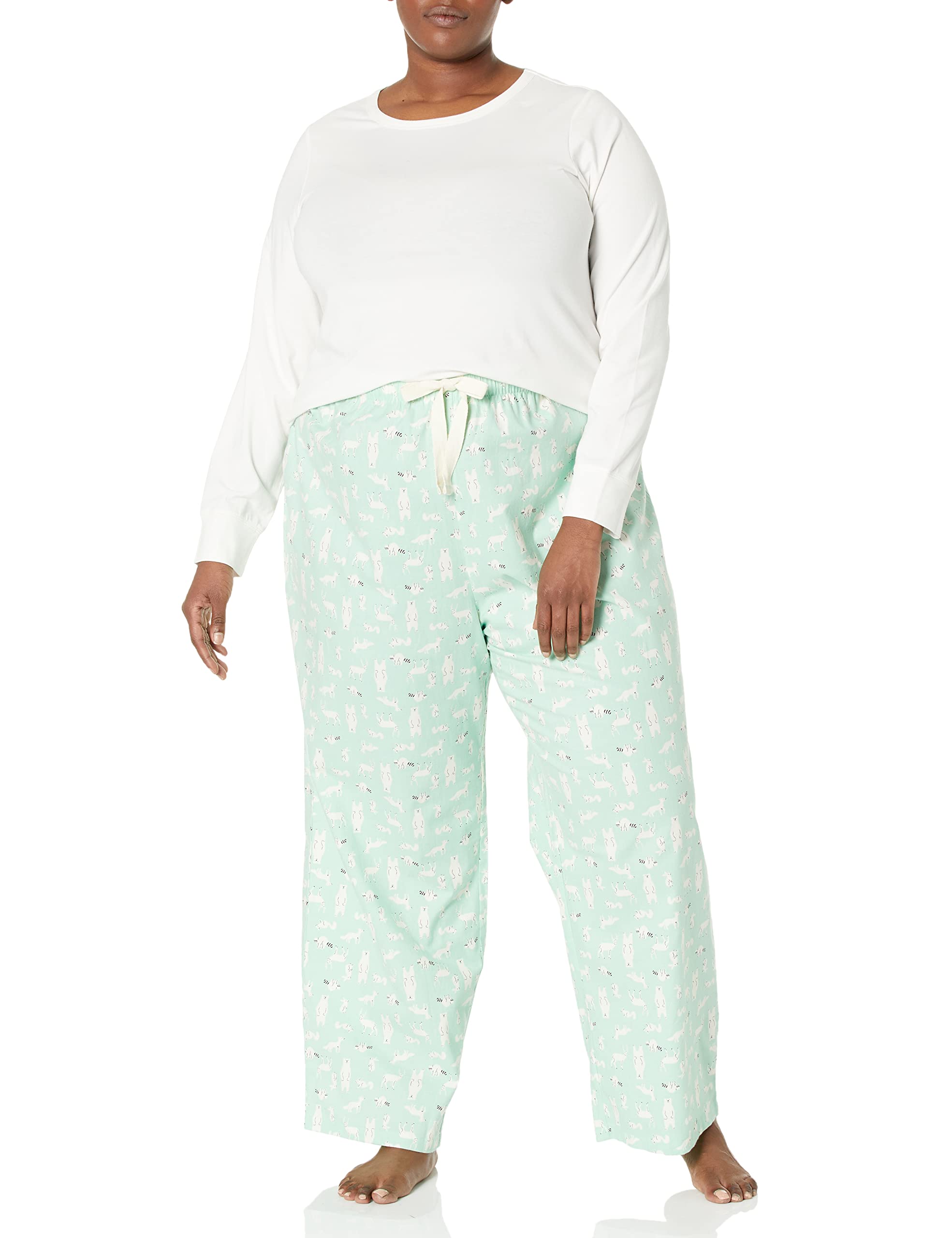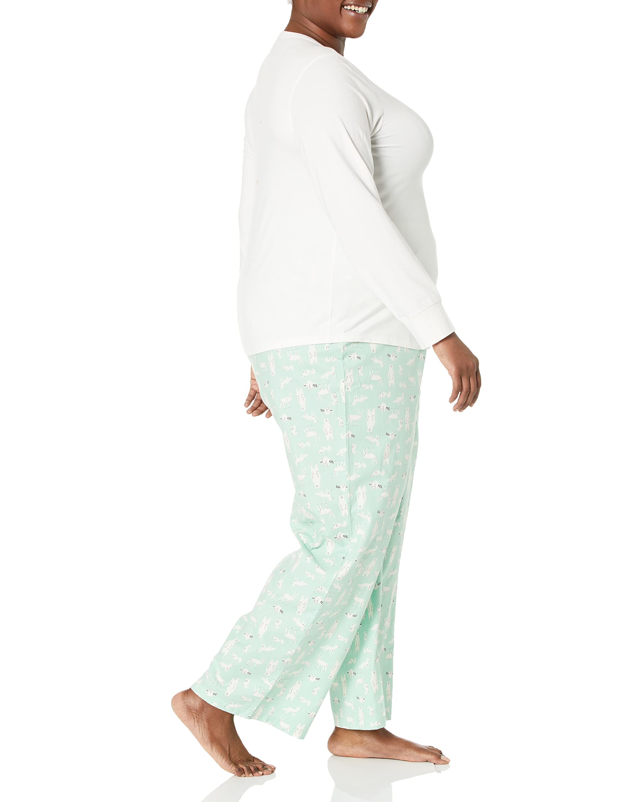 T-SHIRT AND FLANNEL PAJAMA SET: The perfect flannel and jersey pajama set for snuggling up and relaxing whether you are sleeping or lounging around the house. Style back to Amazon Essentials Women's Slippers to keep your feet cozy and warm.