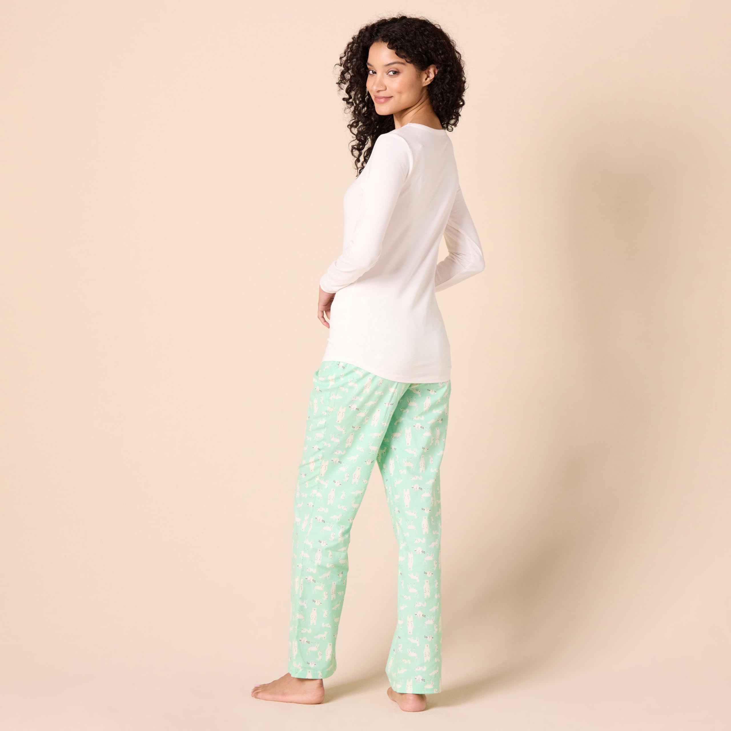 DETAILS: Featuring a soft cotton long sleeve top and relaxed sleep pants with elasticated waistband and adjustable drawcord for ease and comfort.
