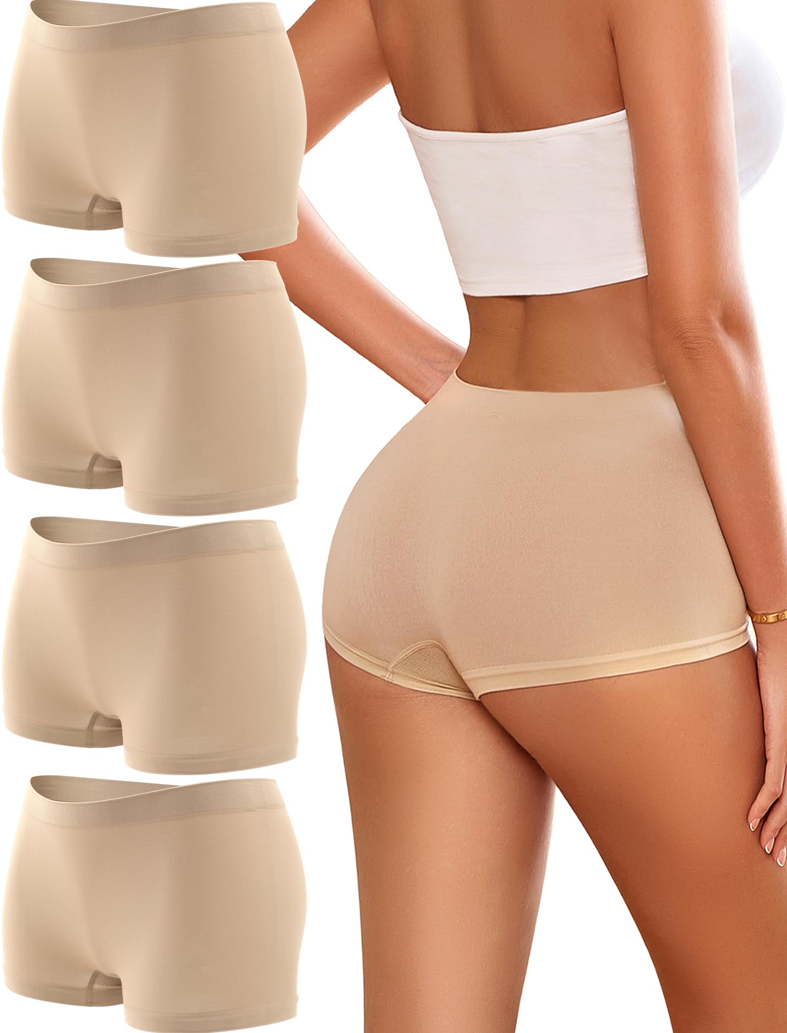 Womens underwear seamless : 92% polyamide 8% elastane skin friendly fabric, Silky smooth when touching and design of sideless underpants prevent protrude from the sides when worn, and makes you have a more perfect figure when you wear them.