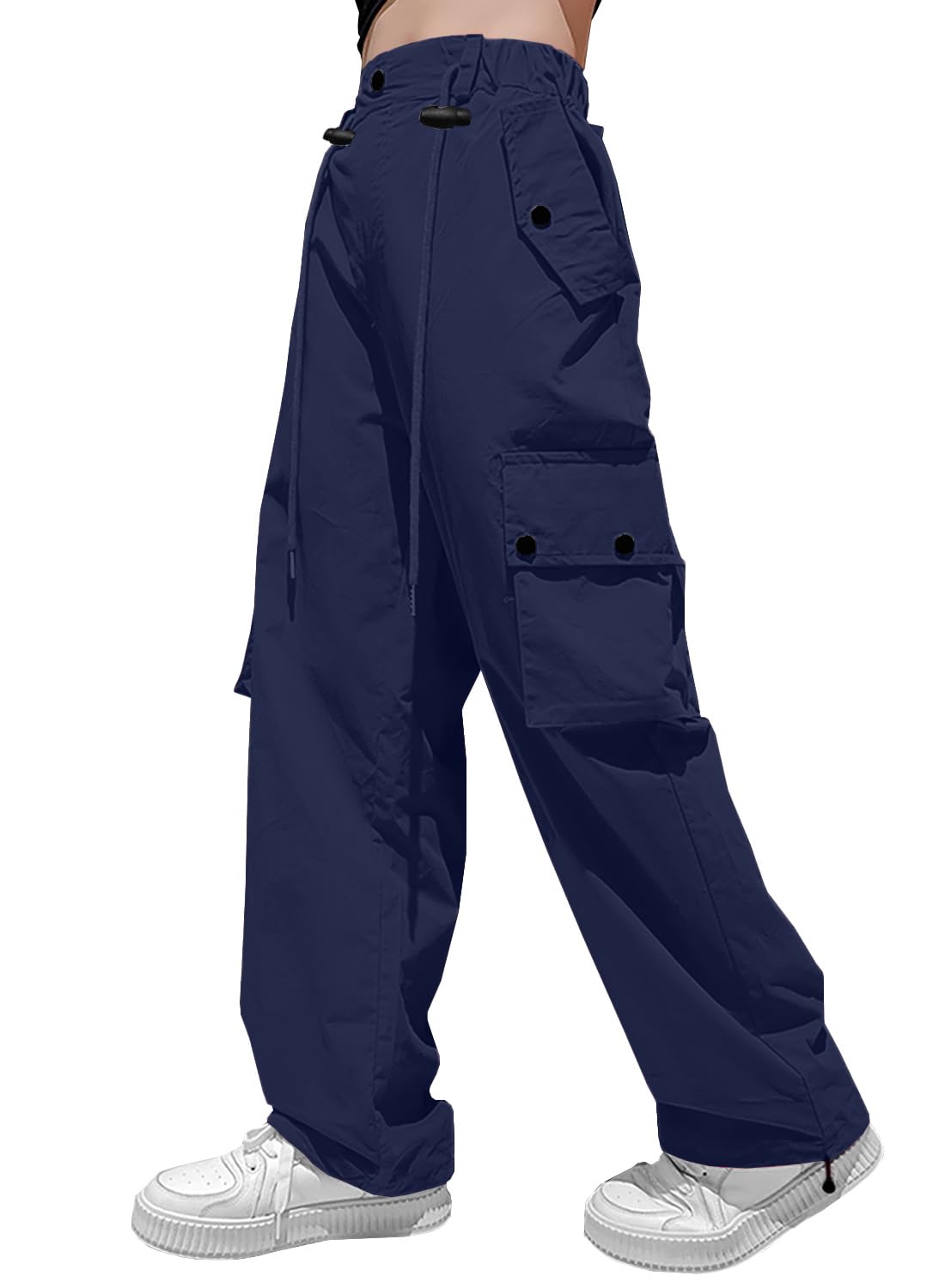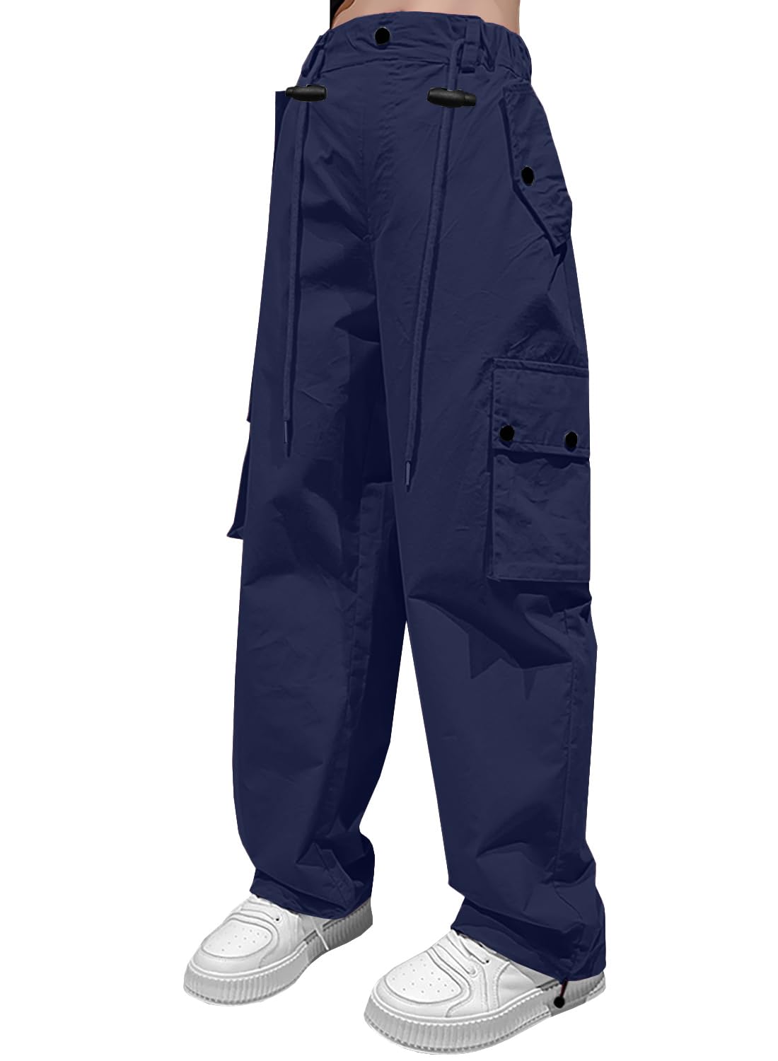 Design: These Girls Y2k Cargo Parachute Pants feature a modern design with drawstring waist and cuffs, offering two different ways to wear them.