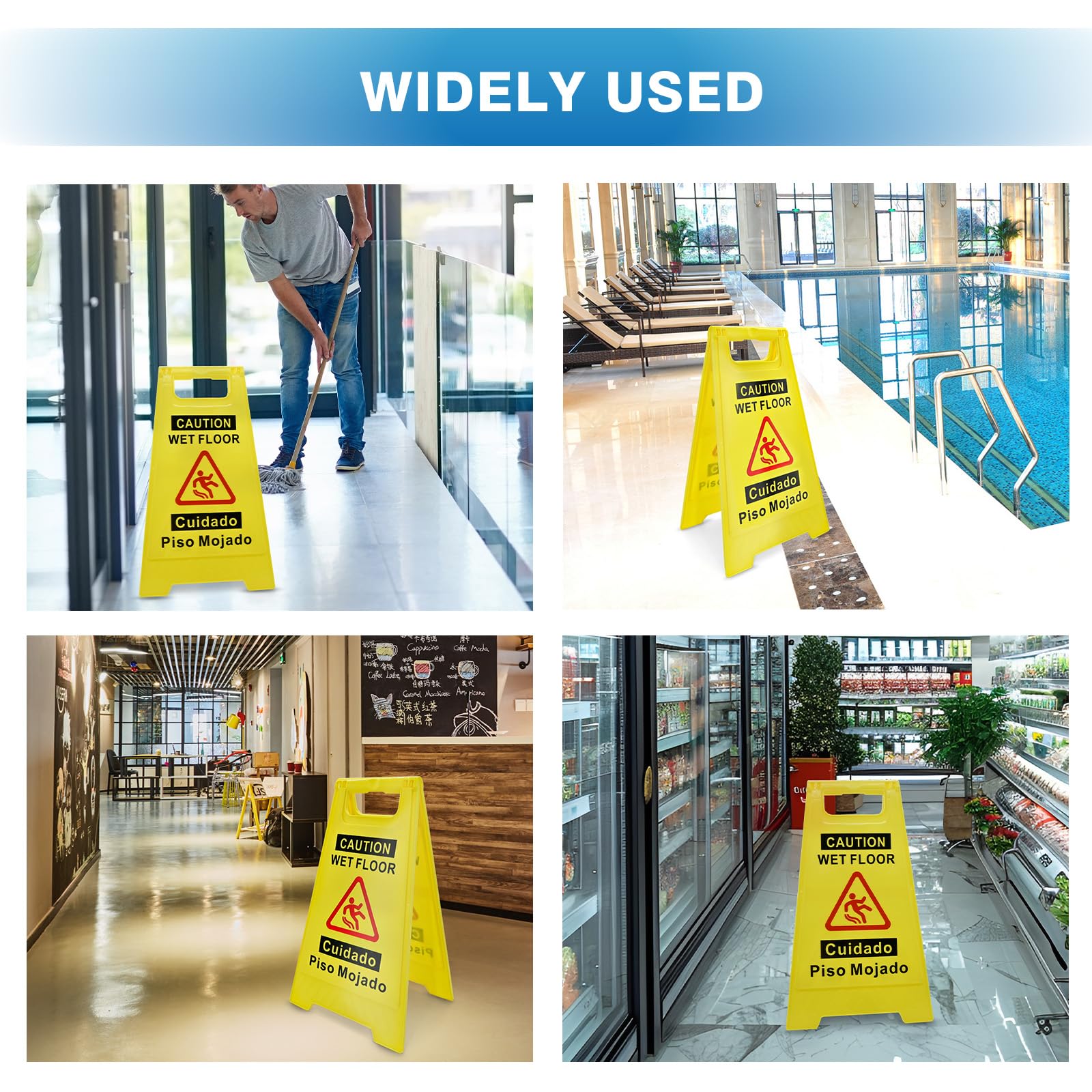 [DOUBLE SIDE VISIBILITY] - With a double-sided visible design, each side displays "CAUTION WET FLOOR" in English and Spanish to prevent pedestrians from slipping.