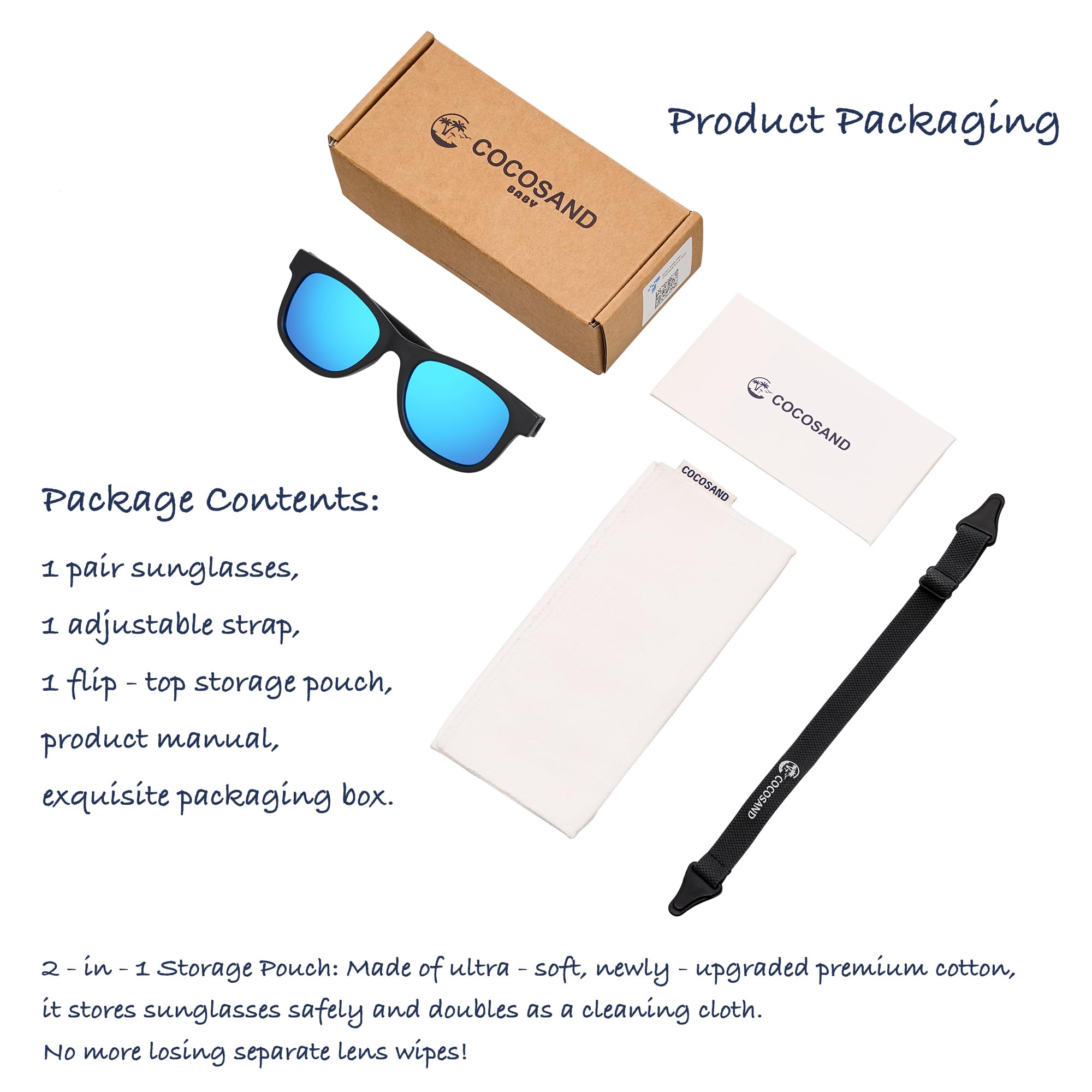 【Stylish and Practical Package】:COCOSAND baby sunglasses come with a flip - top glasses pouch and a product manual. The packaging is made of kraft paper, simple yet elegant