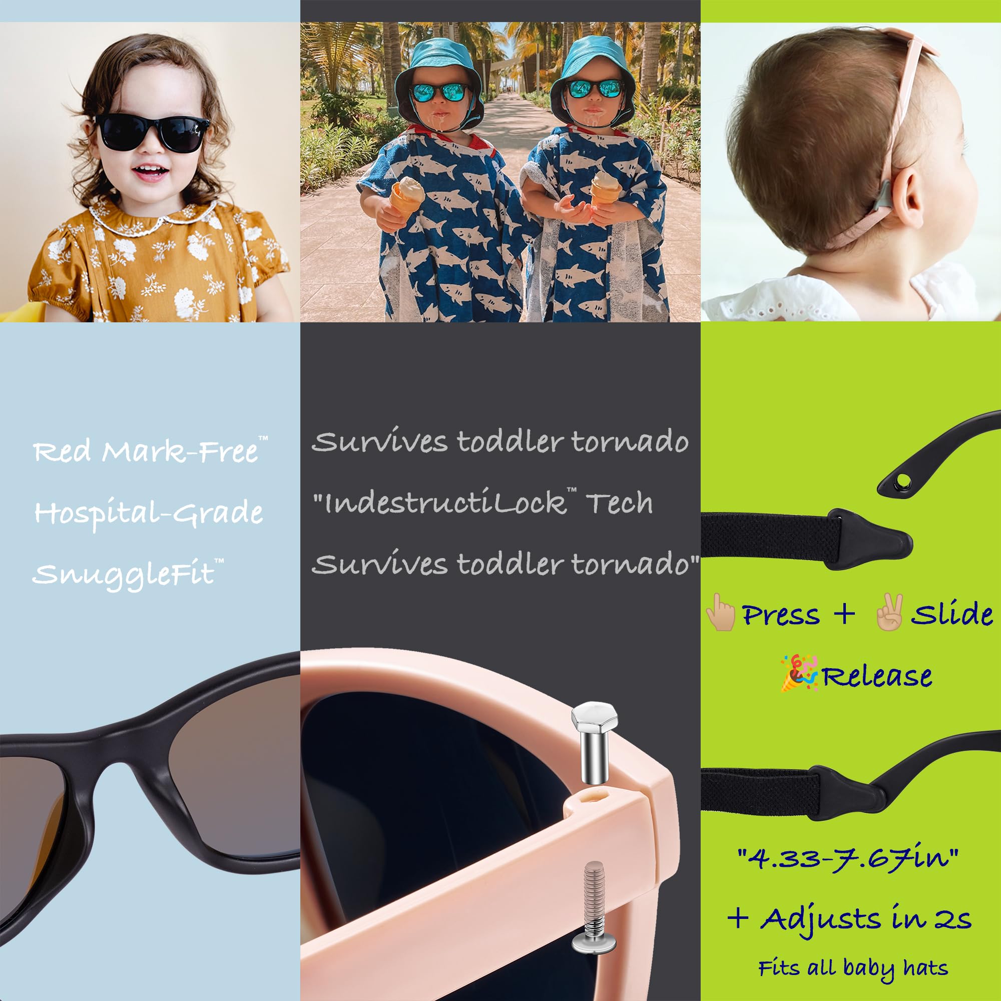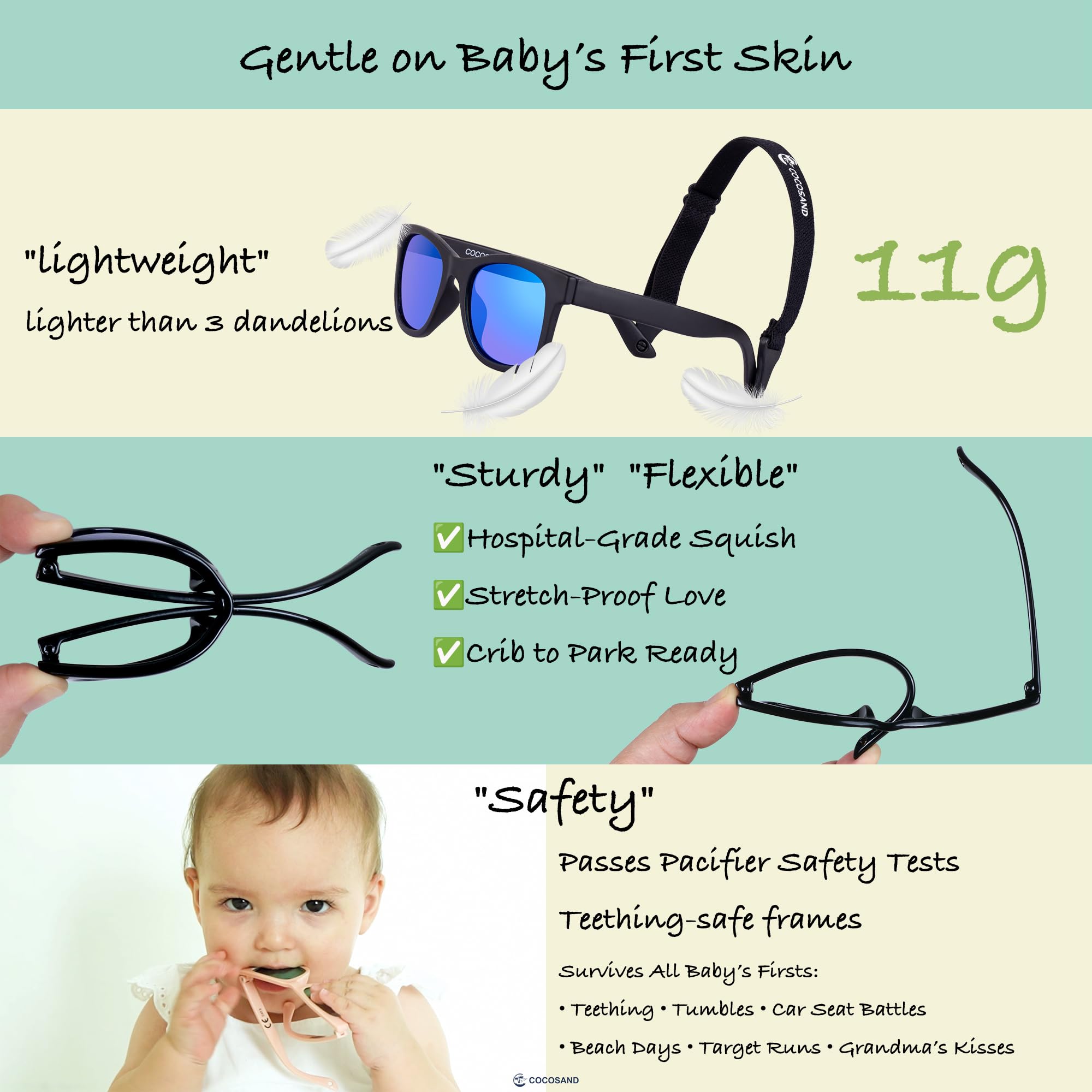 【Outdoor - Ready Functionality】:For all your outdoor fun with your little one, our baby sunglasses 0-6 months are a must. The polarized lenses block glare and keep the view clear. Lightweight and tough, they can handle any adventure, whether it's a park playdate or a beach trip