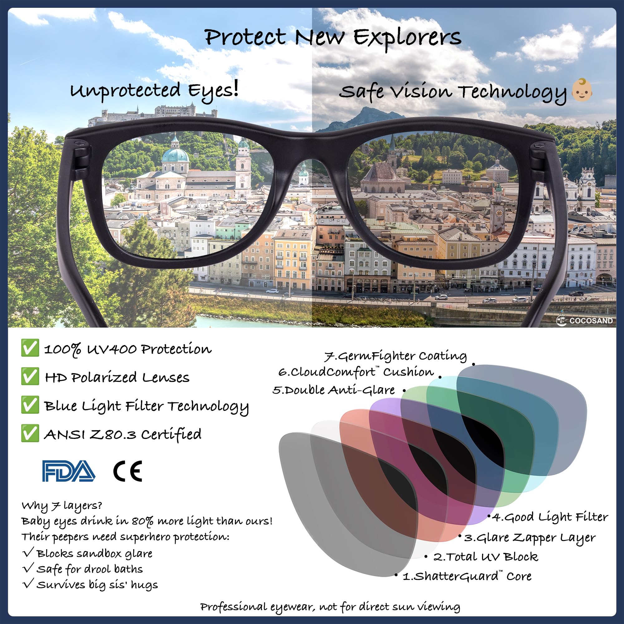【Safety First for Your Baby】:COCOSAND baby sunglasses are a game - changer for 0-24 month olds. The polarized lenses protect eyes, and the TPE frame is as safe as can be. It's gentle on baby boys' and baby girls' skin, just like a soft hug. Whether they're infants or toddlers, it's a worry - free choice