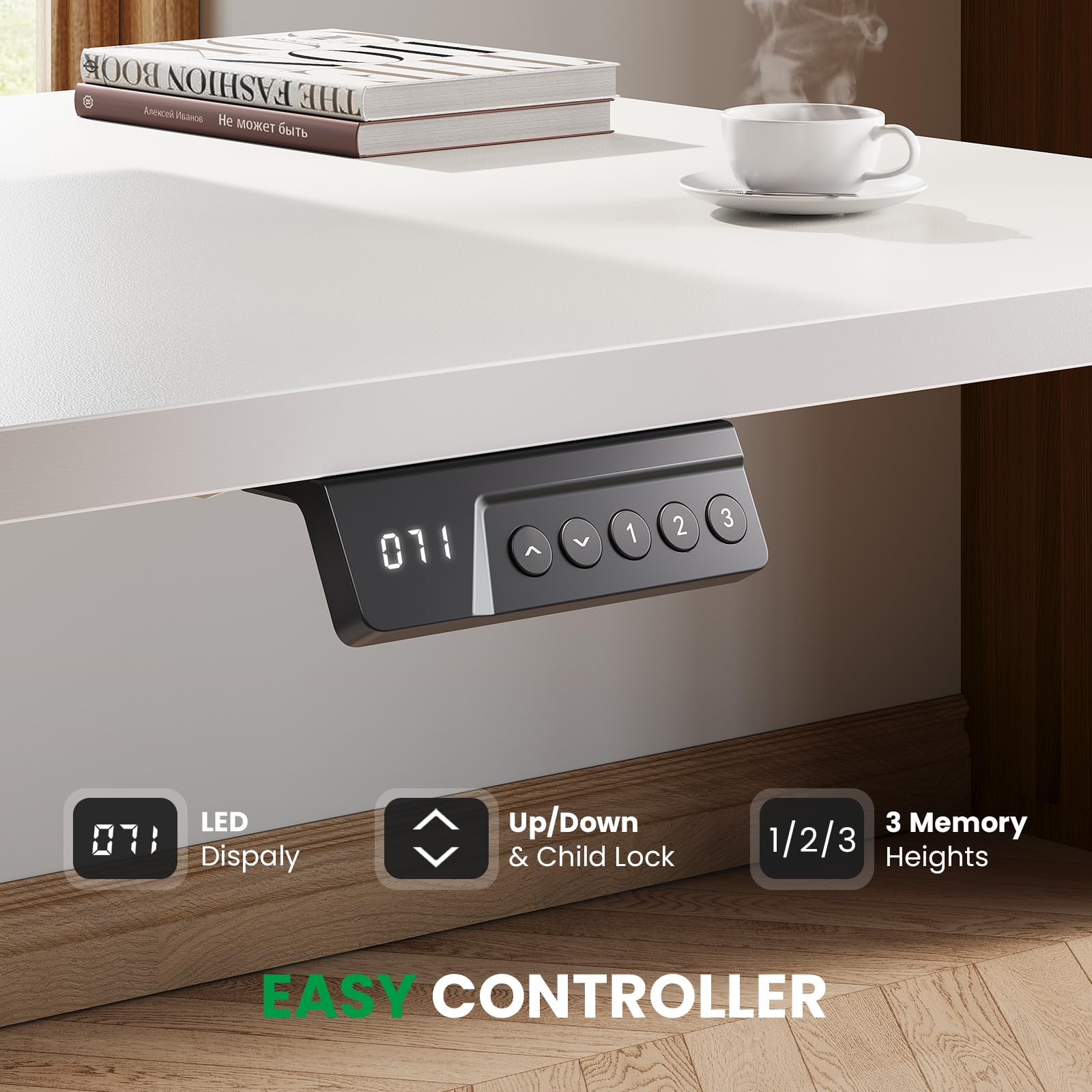 【Easy Controller & Height Adjustment】The L-shaped standing desk equipped with a smart memory controller, this desk allows you to preset 3 custom heights (27.5" - 45.7") for one-touch access to your ideal sitting/standing height with seamless transitions. The exclusive child safety lock prevents accidental operation. SIAGO standing desk is your ultimate solution for maintaining healthy work habits in the comfort of home.