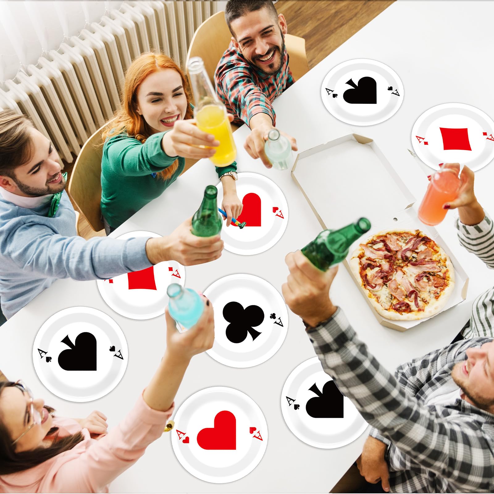 Product description: 48PCS Casino Party Paper Plates Las Vegas Theme Party Decorations 7In Poker Dessert Plates Casino Night Party Disposable Plates for Game Night Birthday Poker Party Event Game Themed Supplies Favors Package includes: 48 plates (7")(18x18cm) Material: Poker birthday party plates are made of high quality paper. Perfect casino nigh theme party disposable tableware supplies. You will get beautiful, high-quality casino party paper plates.