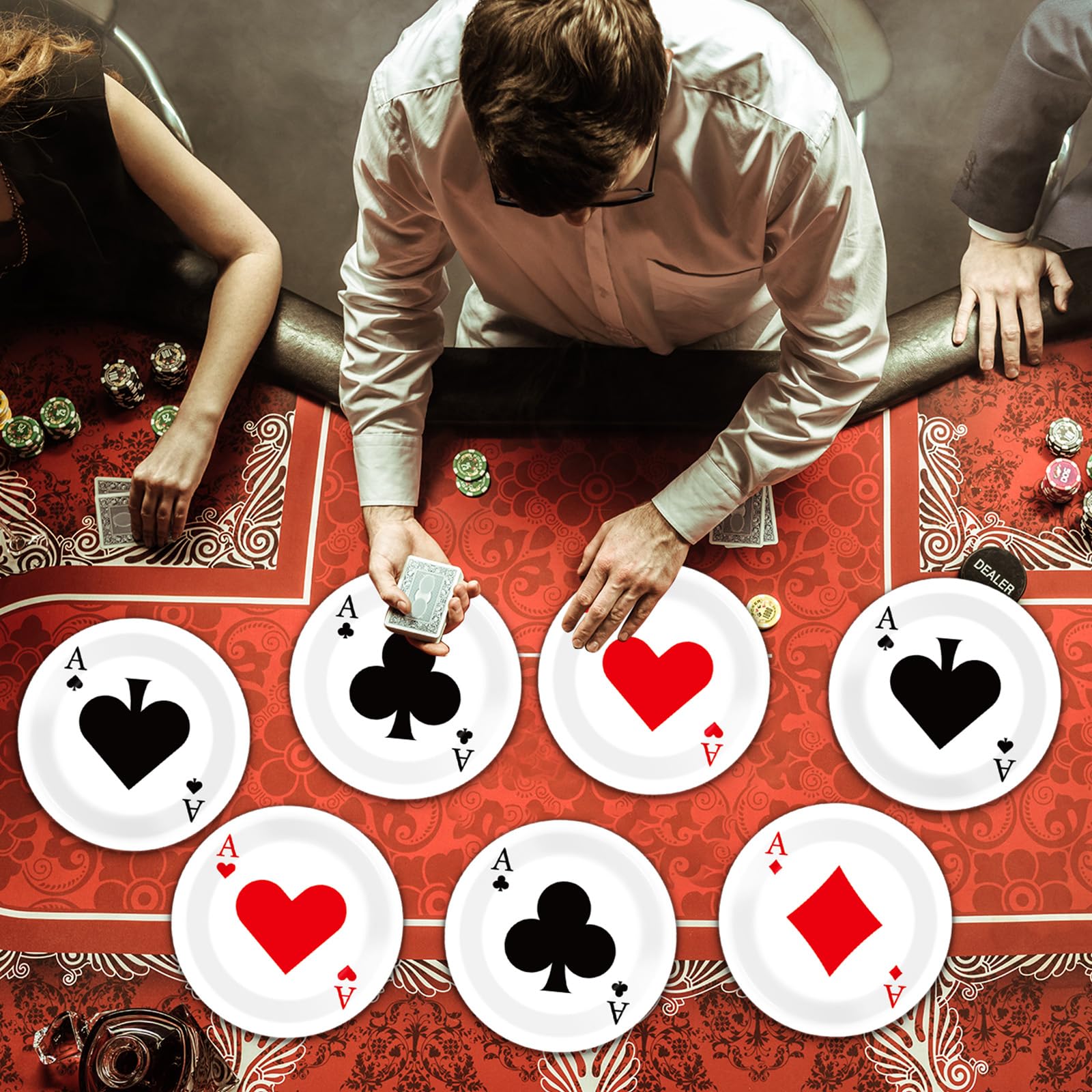 Eye catching poker style:The poker dinner dessert plates are designed with casino style,the plates are printed with a classic poker A patterns in different suits that is not easy to fade,will add a chic feel to the setting of any venue.