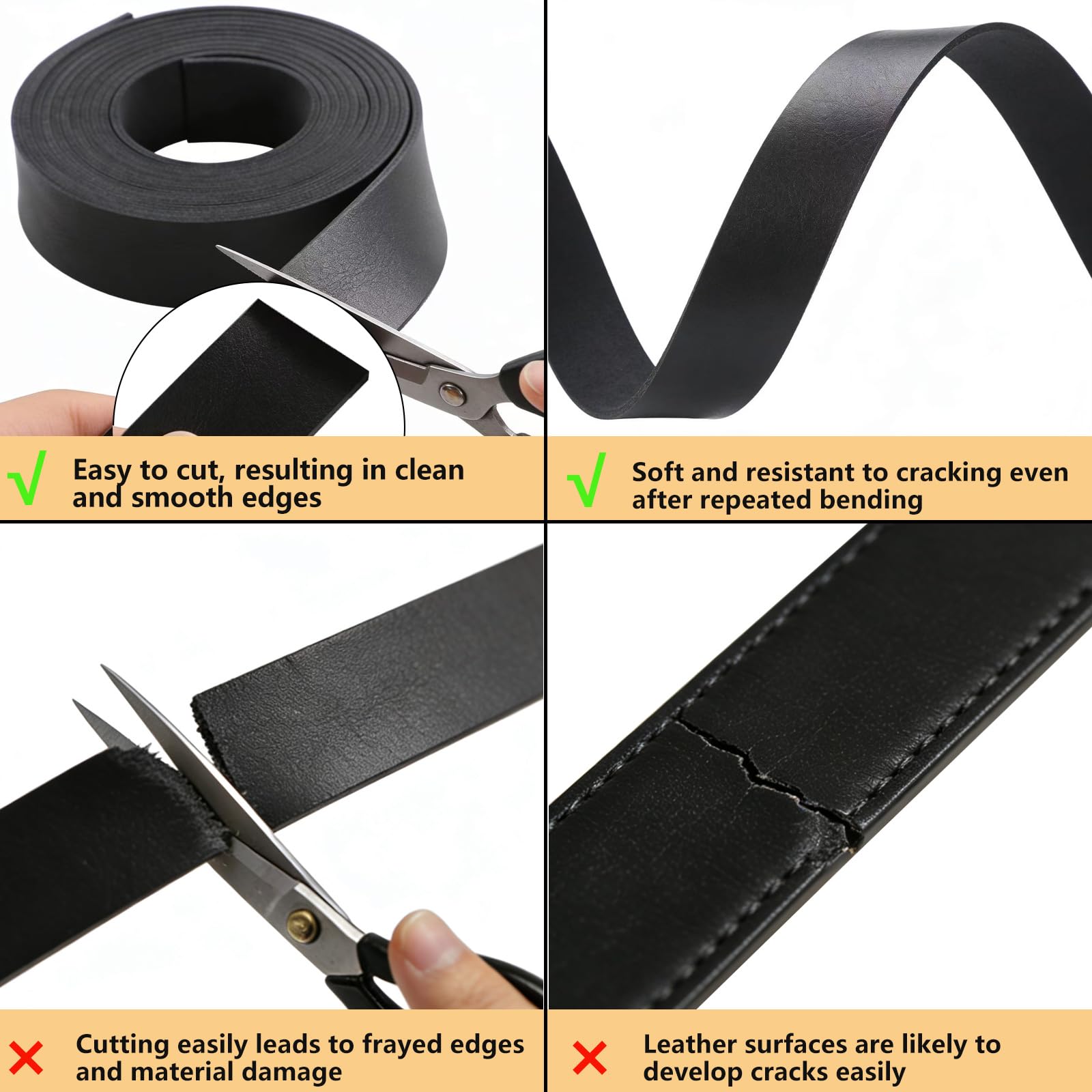 3.【Easy to Make】:The soft faux leather strap with consistent thickness easy to trim,does not require too much cutting process ;can tie, puncture, or embellishto make a variety of crafts,can also be used directly,Make your crafts according to your needs.