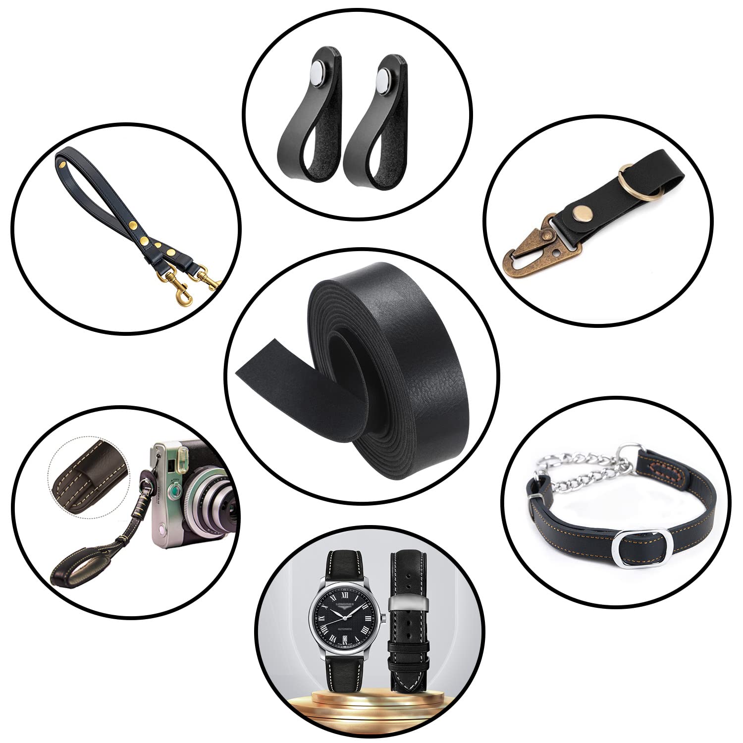 4.【Application】:Leather strip are used for many purposes, such as personalized pet collars like dog collars & cat collars, unique necklaces & cuff bracelets, straps for luggage, leather rivets, double cap rivets, tubular rivets & burrs leashes, belts, ladies belts, sandals, backpack straps, shoulder bag straps, beach hat decorative straps, car keychains, pendants, most leather tools.