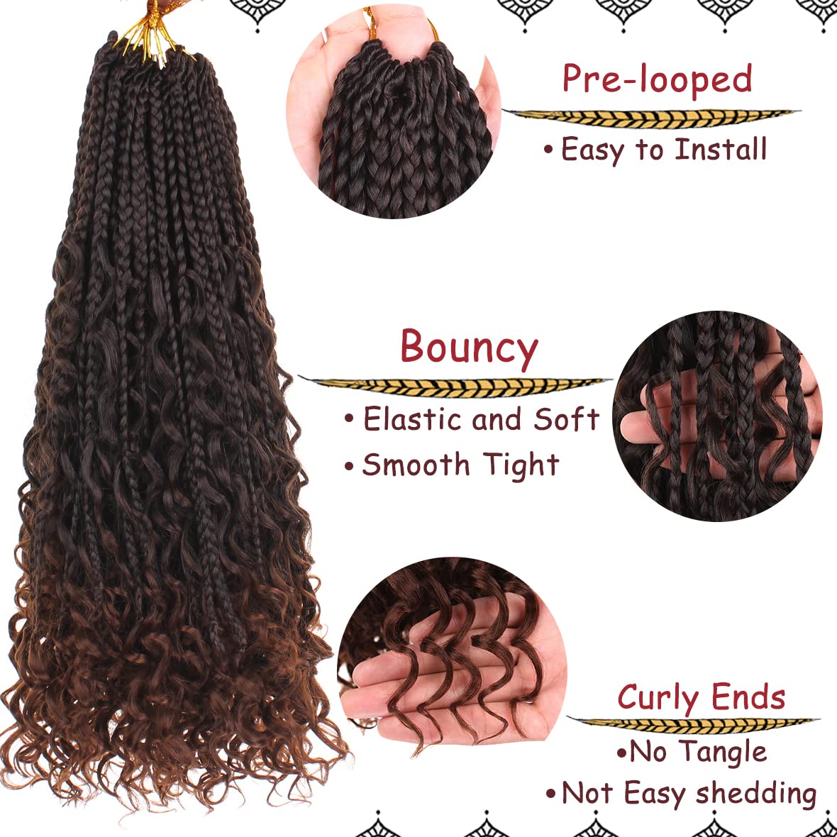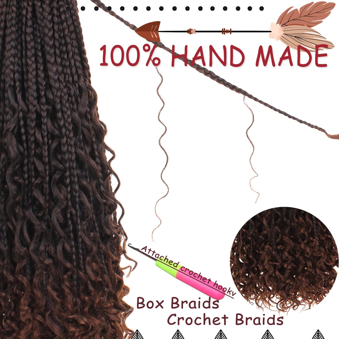 Hair material: our boho goddess box crochet hair use is made of 100% high-quality high-temperature synthetic fiber, can be washed with hot water, does not deform under high temperature, and is easy to style.