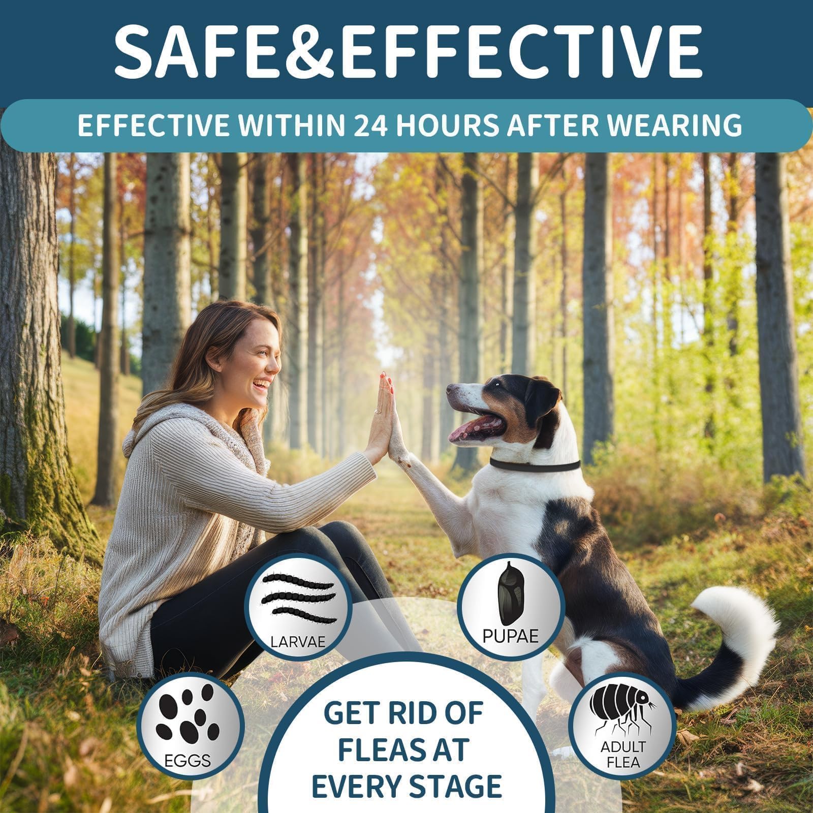 Safe & Effective Protection:Worry-free pet care is now within reach with our flea and tick collar for dogs. Crafted with advanced natural formulas, it provides immediate protection against fleas and ticks within 24 hours, ensuring your dog's comfort and health.