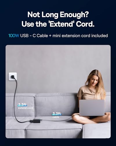 Added 3.3ft Extension Cord for Better User Experience: The usb c charger comes with a 3.3 ft extension cord, you can use it to increase charging distance and avoid the situation of wall charger falling out of the socket at the same time.