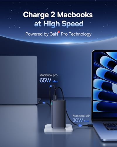 100W Max Charging for Laptops: Both USB C ports can deliver a maximum output of 100W when used alone. With this 100W usb c charger, you can charge a MacBook Pro from 0%-80% in an hour.