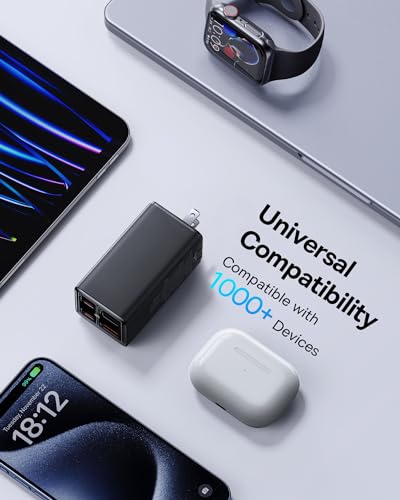 Compact and Foldable Charger for Travel: With the compact and foldable plug design, you can take the charger with you wherever you go to charge multiple devices instead of carrying a bunch of chargers.