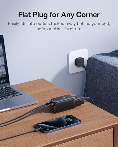 4-in-1 Smart Fast Charging: With 2 USB-C ports and 2 USB A ports, this 100W usb c wall charger can effortlessly and intelligently charge your smartphone, tablet, notebook, earbuds or smartwatch simultaneously.