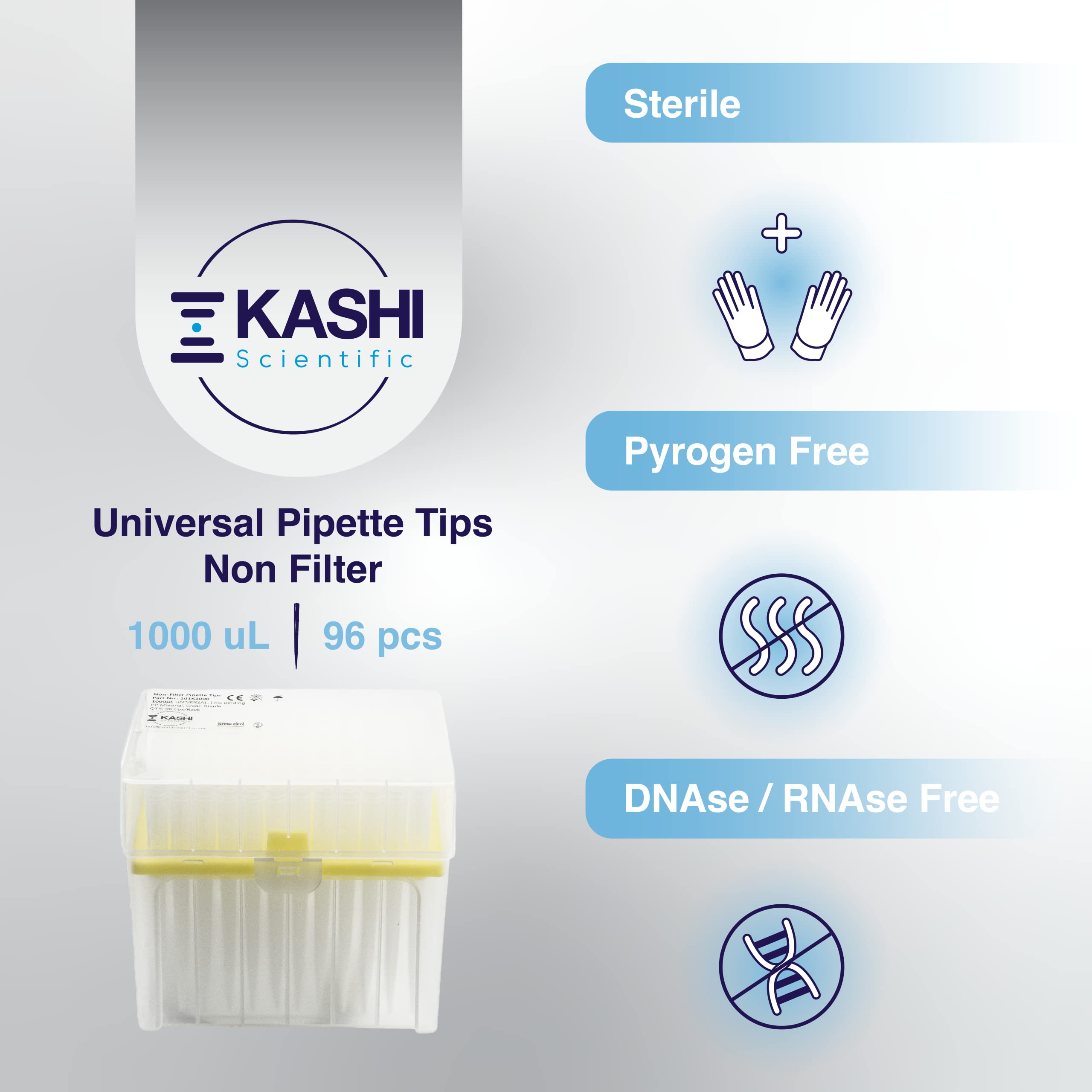 Universal tips compatible with most research grade pipettors; Standard size for single, 8, or 12 channel pipettors