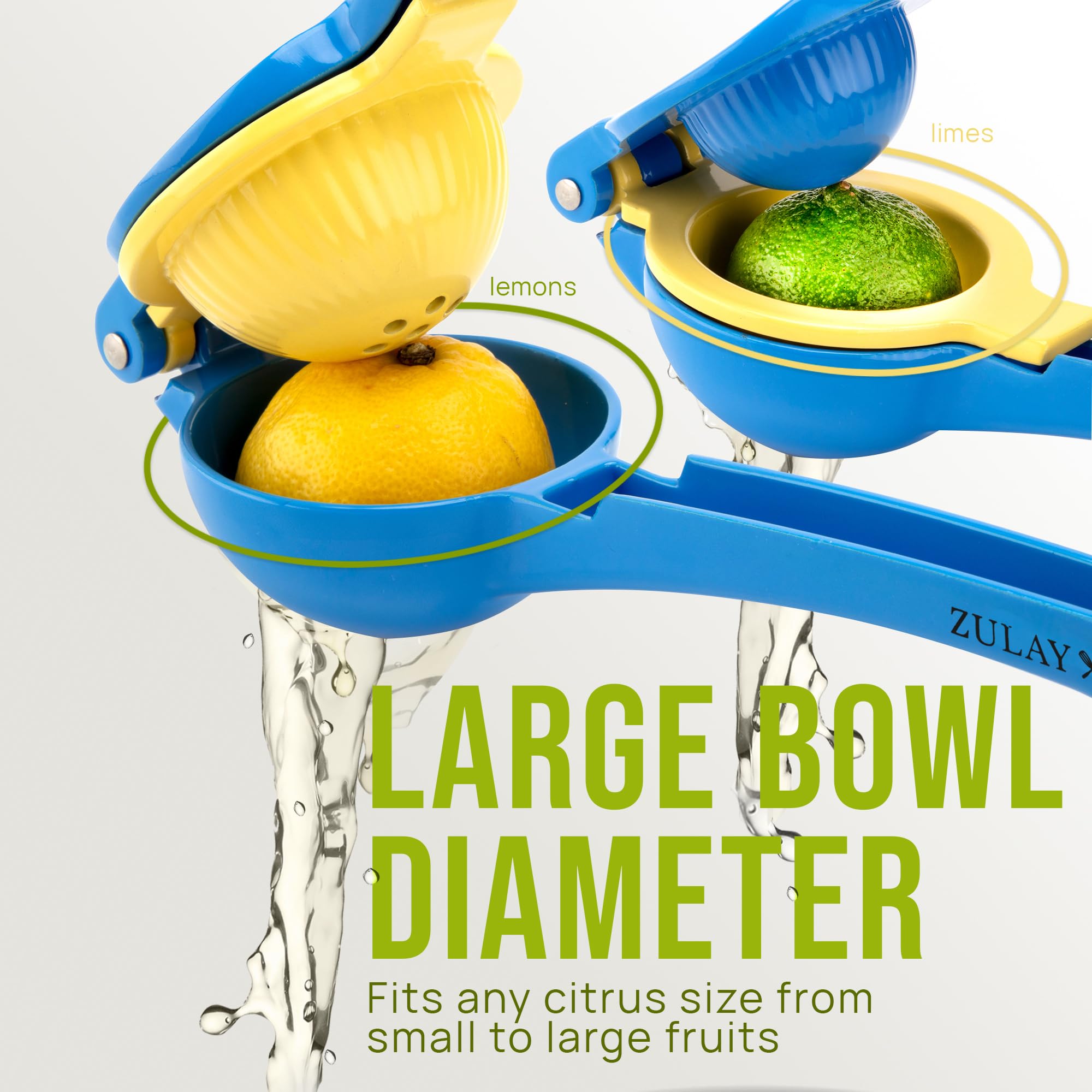 STURDY AND HEAVY DUTY BOWLS: This durable manual juicer is made from aluminum and is finished off with a food-grade coating, making it a perfect addition to your cocktail accessories for years to come. The ergonomic handle makes the lemon lime squeezer super comfortable for even kids to use.