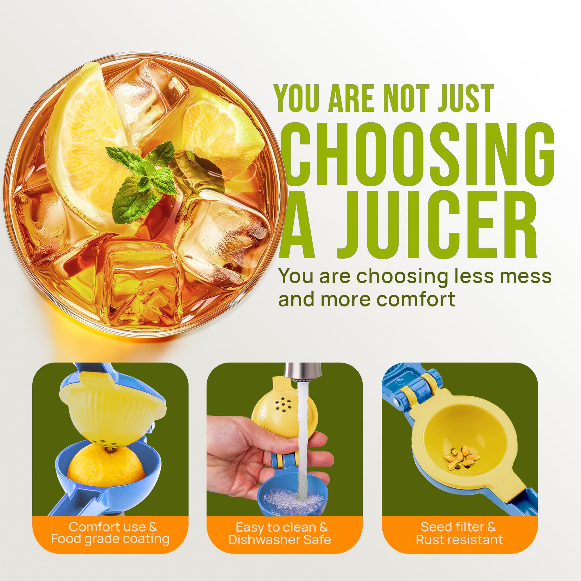 CLEANS IN SECONDS: After adding a tangy flavor to your recipe, simply toss the citrus juicer in the dishwasher for a quick clean up. Our juice press can also be effortlessly cleaned by running it under water.