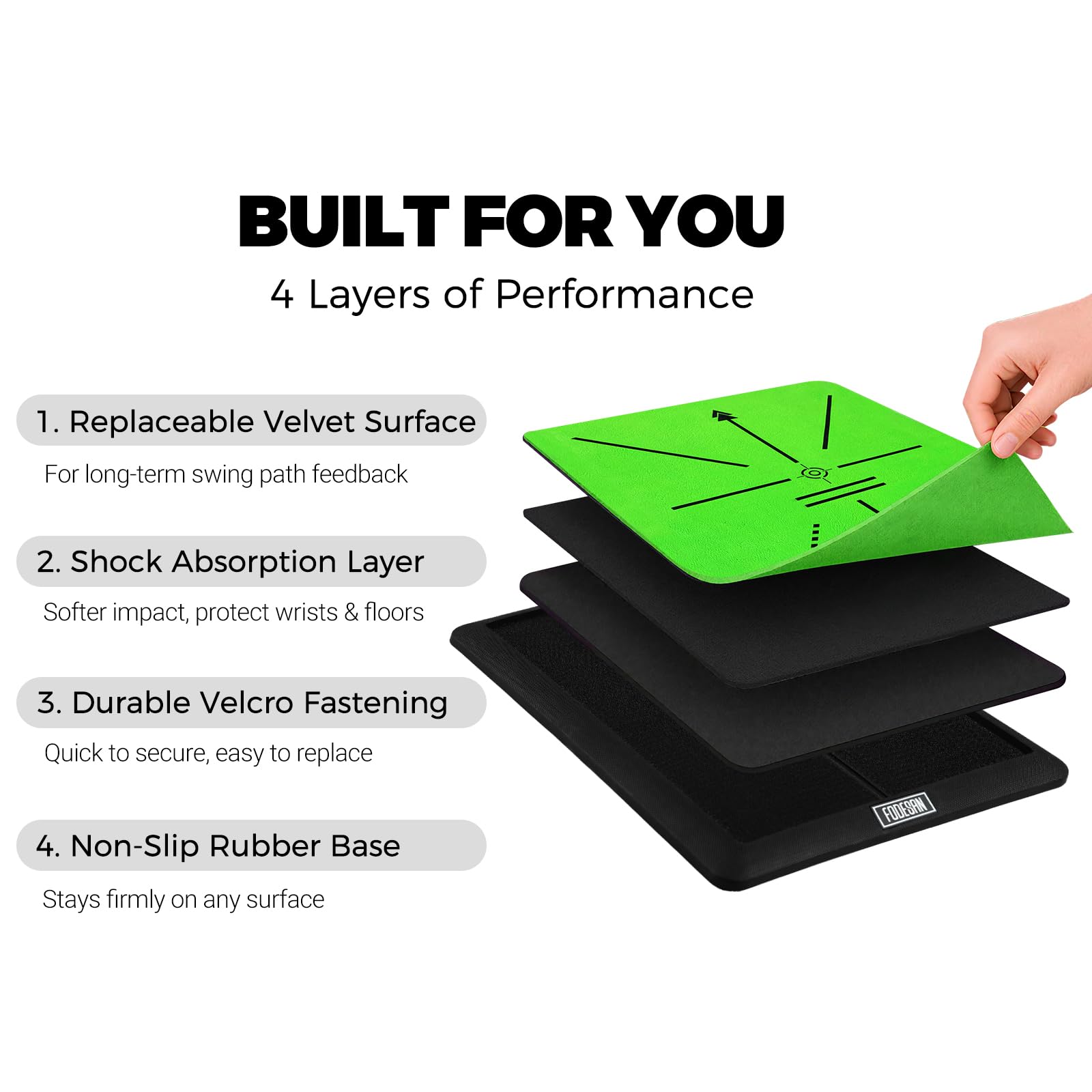 Dual Velvet Pads for Longevity & Extra Training Value – The golf hitting mat comes with an extra replaceable velvet pad, attached with Velcro for easy swapping. This feature ensures long-lasting durability and consistent feedback with each use. Perfect for frequent golfers, this mat ensures that your practice equipment stays in top condition. A fantastic golf gift for him that will keep improving their game for years.