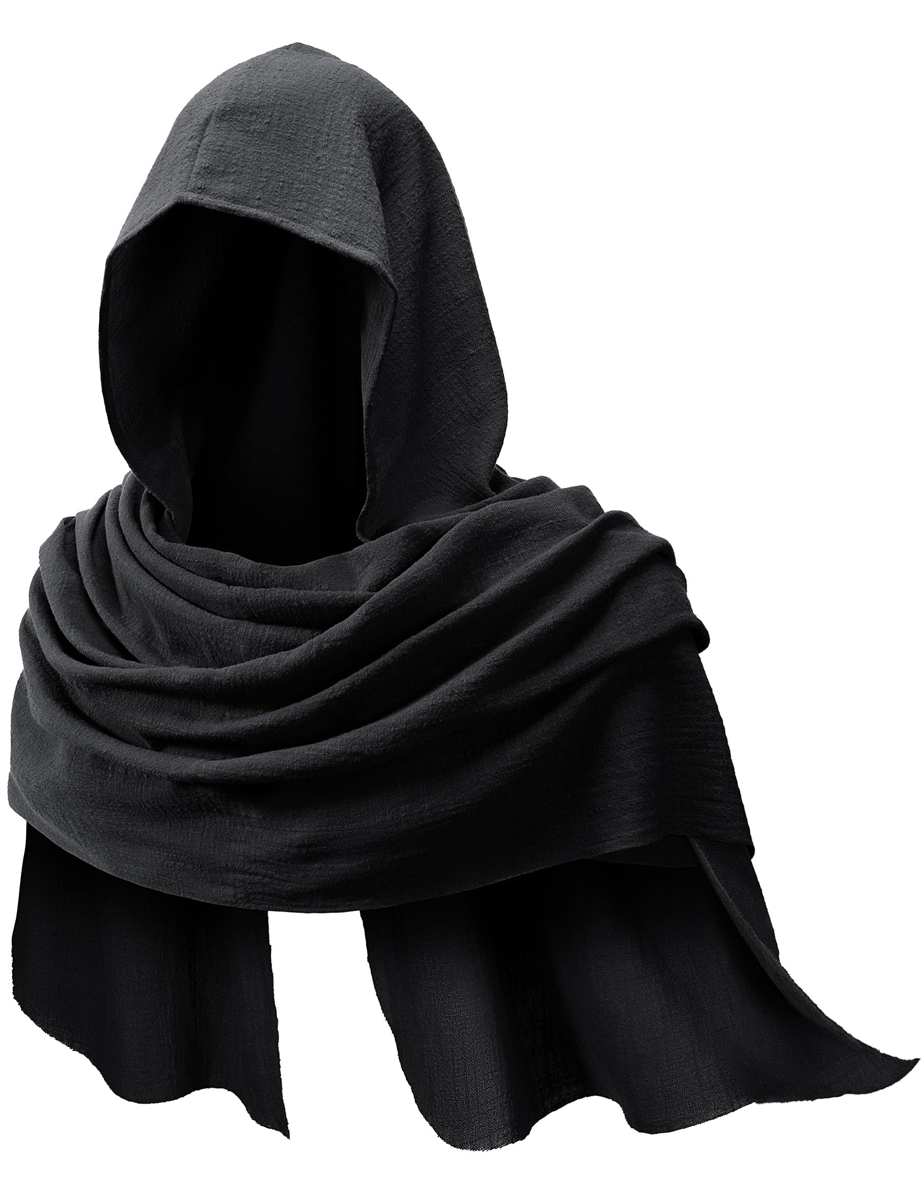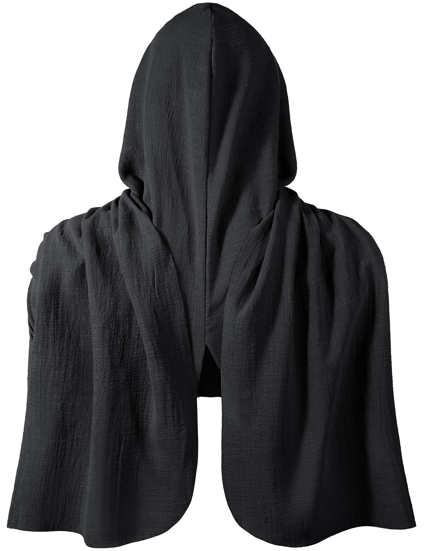 Description Unisex adult medieval renaissance hooded cape goth cowl multifunctional vintage scarf shawl for men women halloween outfit cosplay costume accessories. Perfect for:halloween cosplay,historical reenactments,evening party,stage performance,anime cosplay,LARP,gothic event theme party accessories costume cosplay,renaissance festival,medieval theme party,church events,cosplay show,party,church events,dress up,christmas,renaissance faire,reenactment activities,theatrical props,birthday and so on. Adult multifunctional hooded cowl cape scarf shawl costume outfit accessory size information: One size:,fit most.