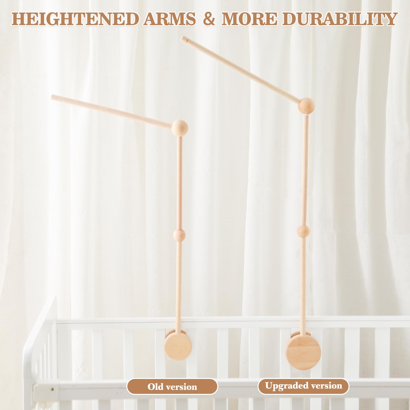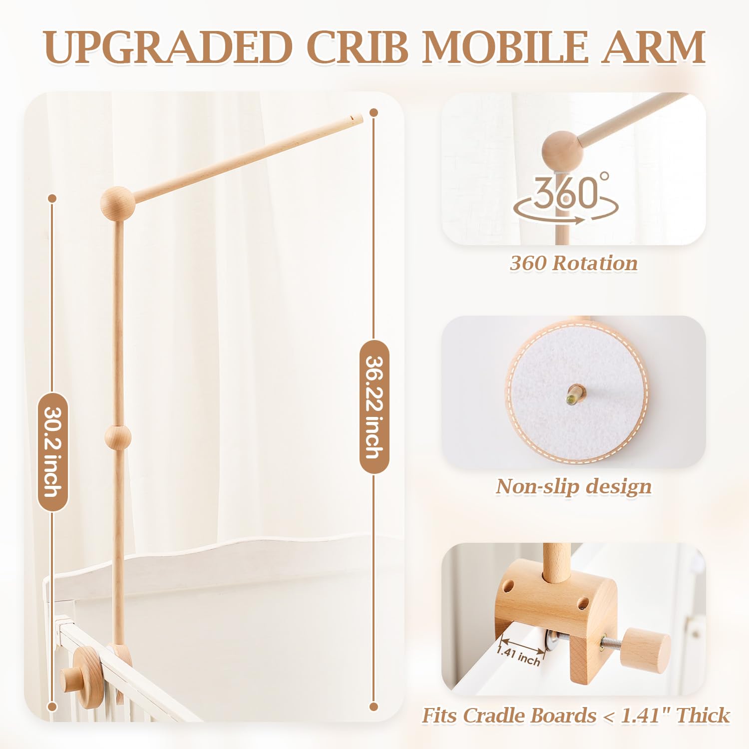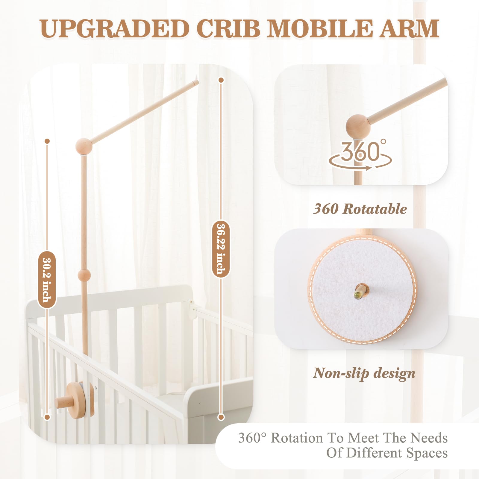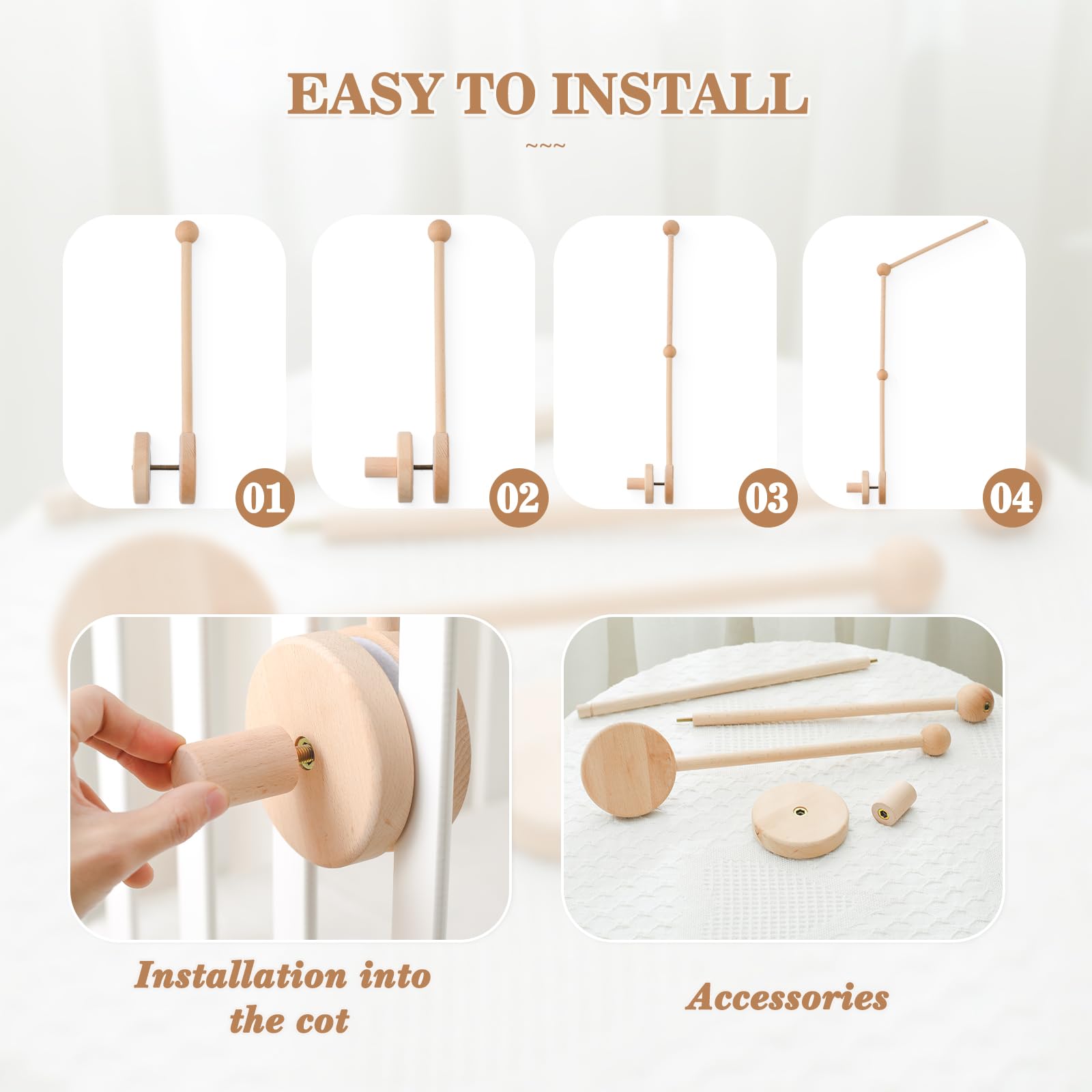 🌲Top Quality - This baby crib mobile holder is made from NATURAL BEECH WOOD, sanded smooth, no-burrs, unpainted. It is 100 % eco-friendly, organic wood and it will be a nice addition to your babies crib set.