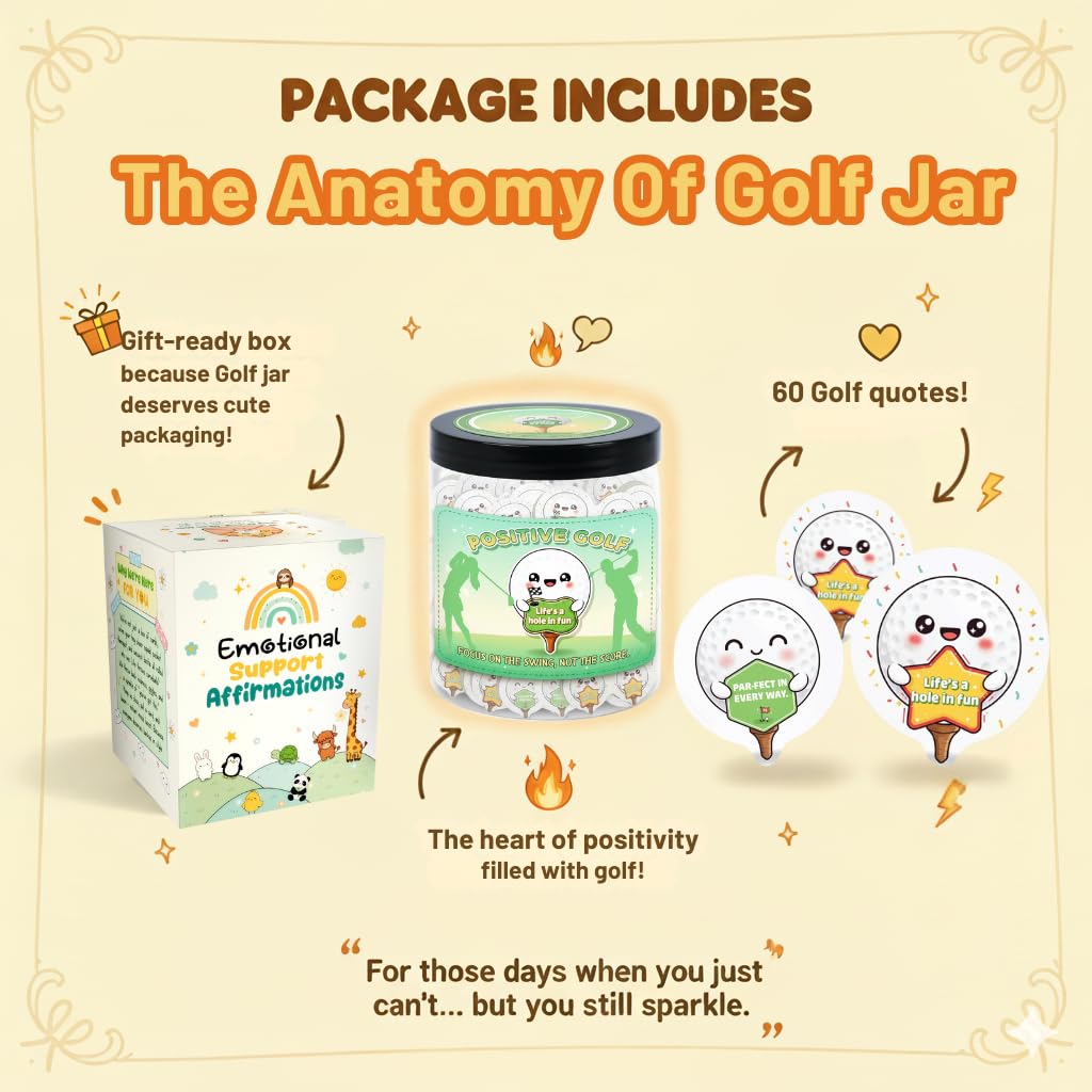 ✨ Premium Jar Quality – High-quality glass jar with thick matte cards printed in vibrant color. Long-lasting and gift-ready — ideal emotional support golf decor for your desk or locker.
