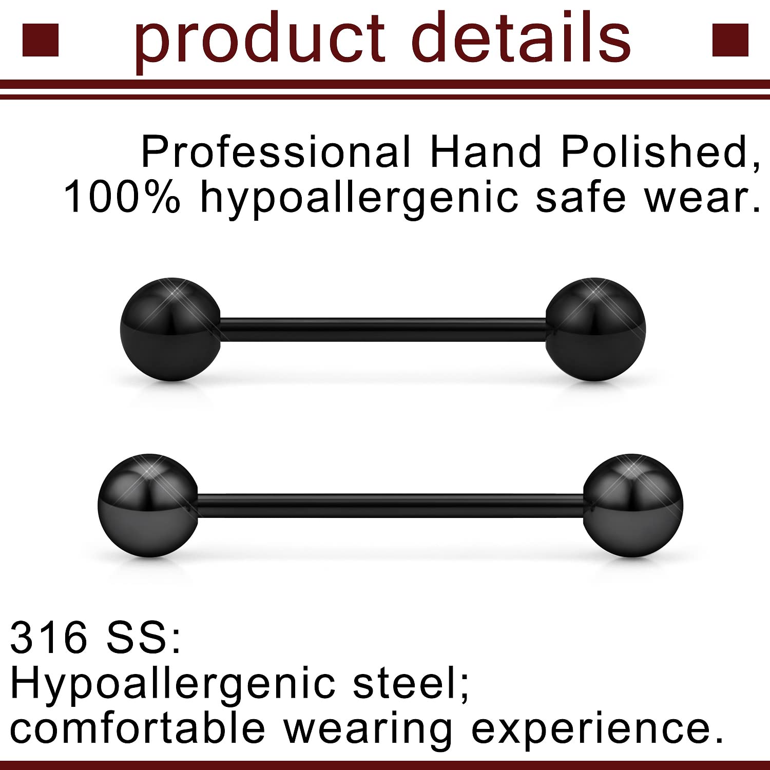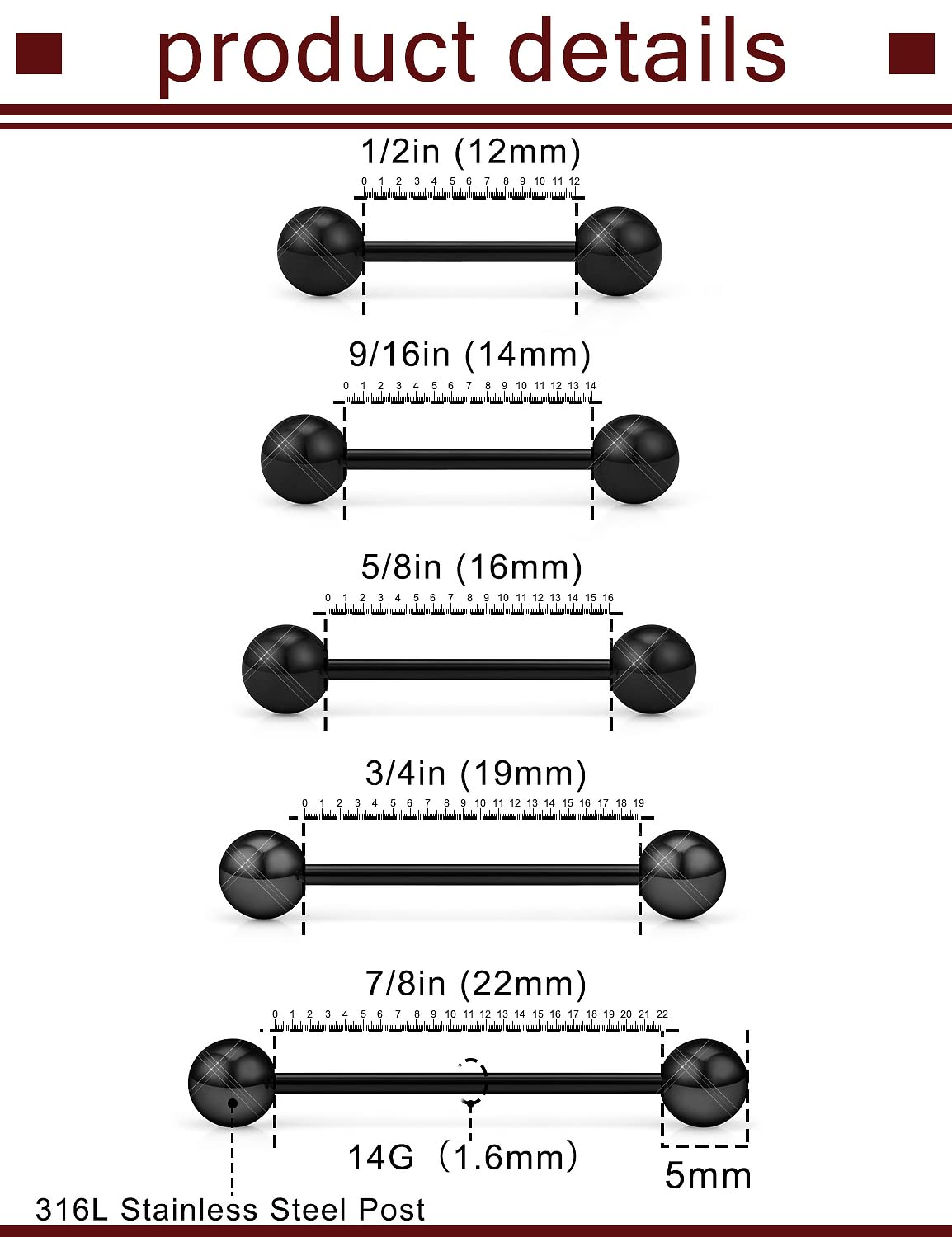 tongue rings Size: 14G (1.6MM); Wearable Length: 12MM 14MM 16MM 18MM 22MM; Ball Size: 5MM .5 Sizes Give You a Better Choice,Flexible coping.