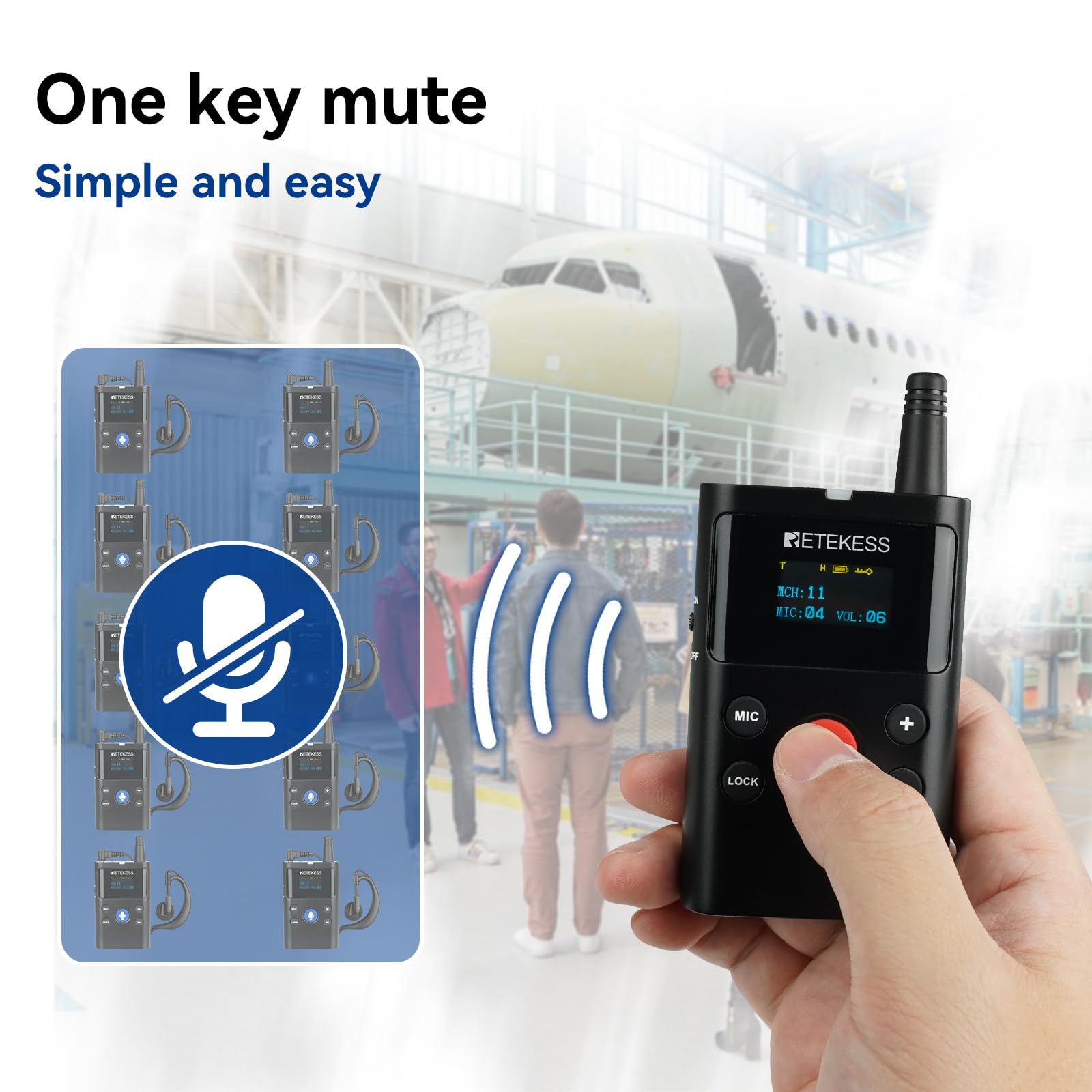 Adjustable microphone gain;the microphone gain of Retekess TT126 intercom wireless tour guide system with two way audio can be adjusted from 1 to 7 levels; during a factory tour; noise levels can vary from one area to another; and the adjustable microphone gain ensures that everyone on your team hears clearly