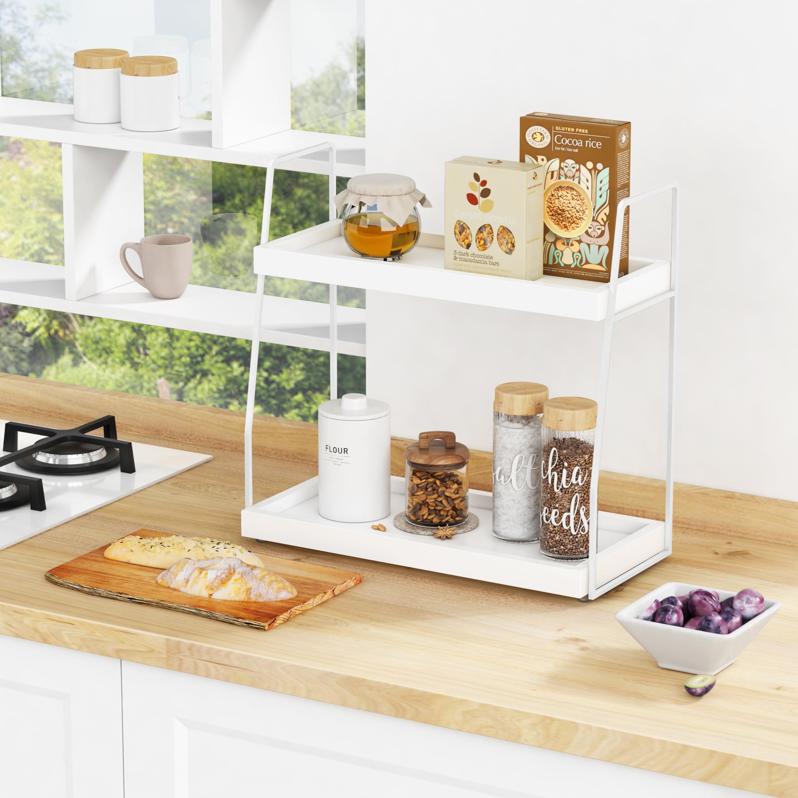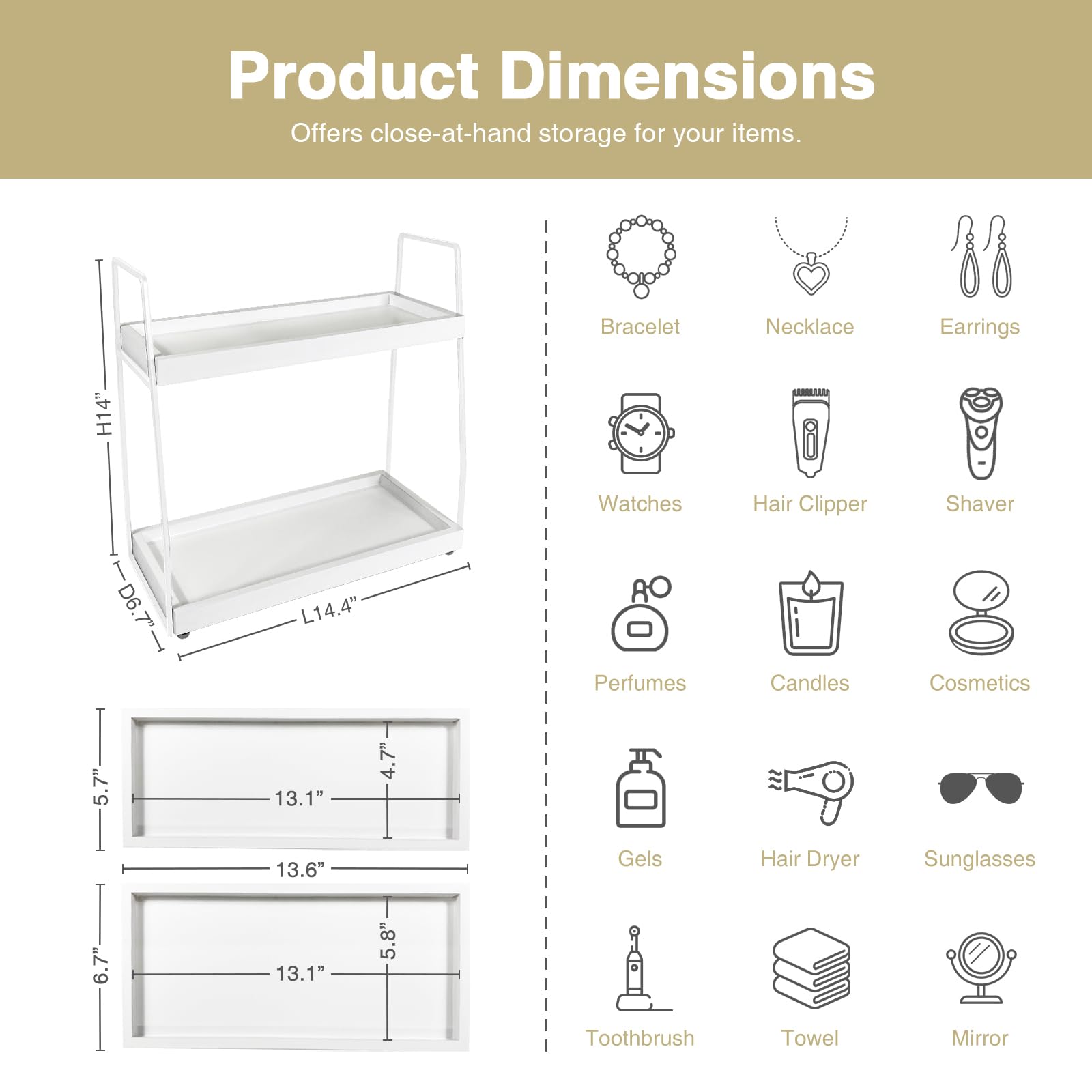Versatile Countertop Organizer - This 2 tier countertop organizer are useful organization tools to declutter counters in your bathroom, makeup room, vanity room, powder room, kitchen, coffee bar, etc. The bathroom shelf organizer countertop can even be placed under the sink to organize messy items.