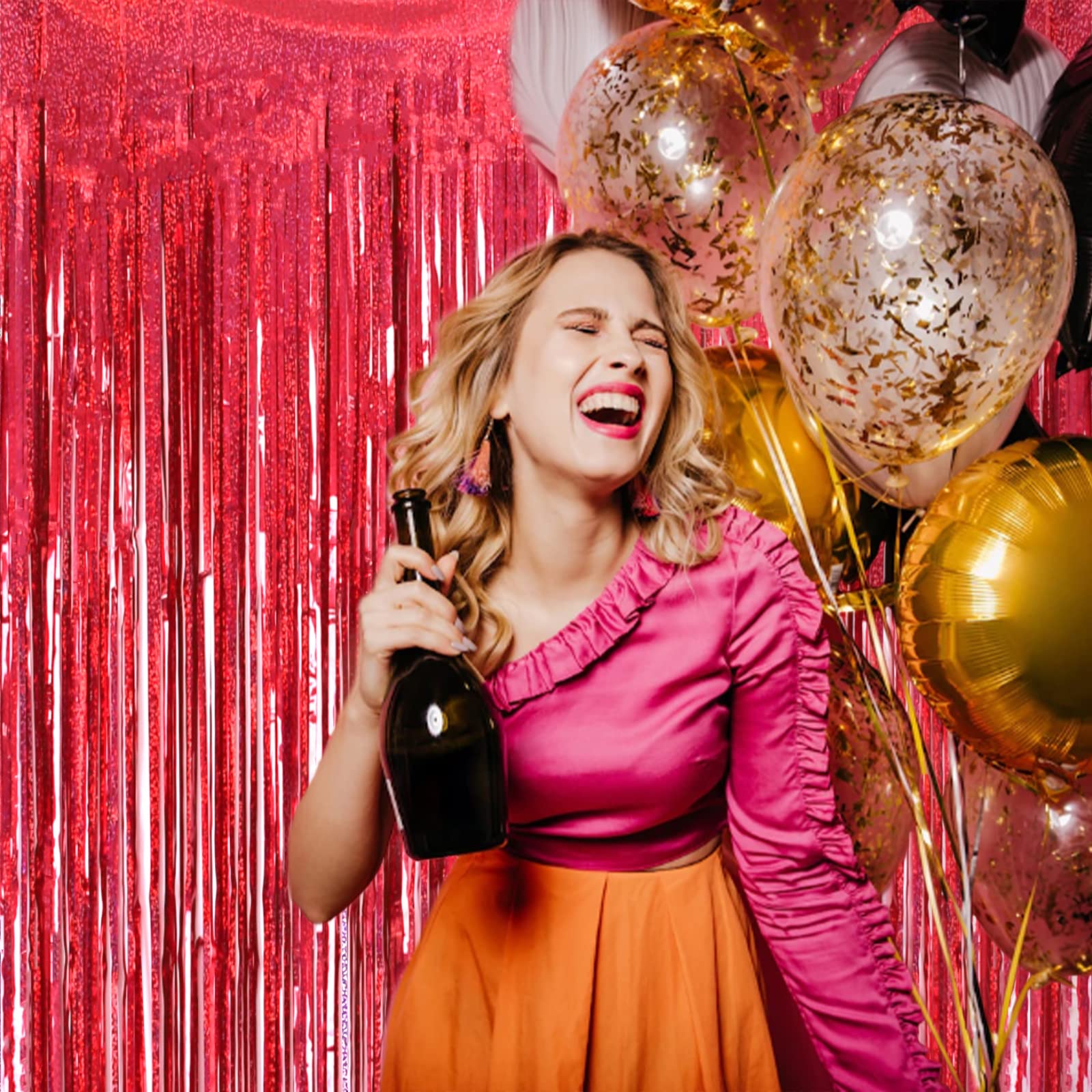 【Easy to Hang and Trim】This red foil fringe curtain comes with double sided adhesive tape on the top, making it easy to hang these photo booth backdrops quickly. When the party is over, you could remove them for your second use.