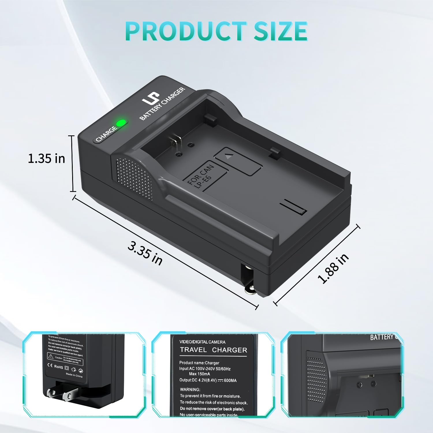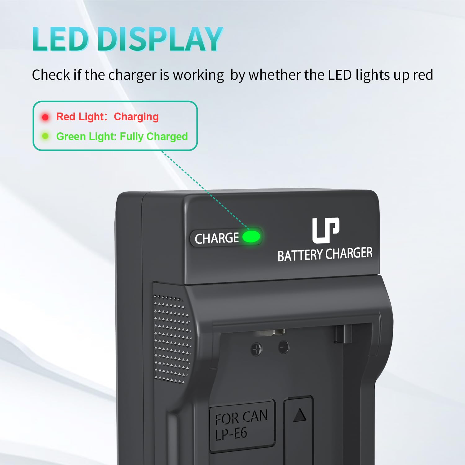 100% SAFETY: LP LP-E6 Battery Charger has overcharge protection, short circuit protection, high temperature protection and surge protection with CE, RoHS Certifications, tested by manufacturer to match OEM products.