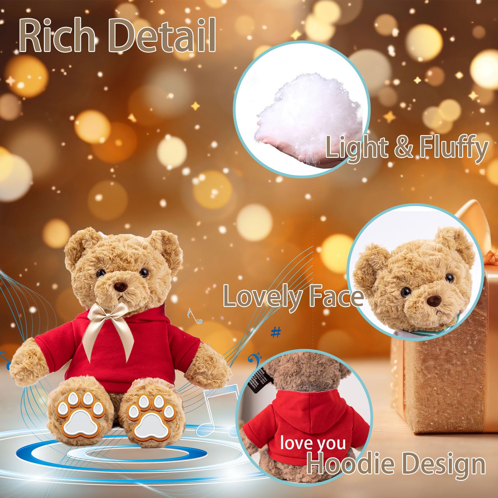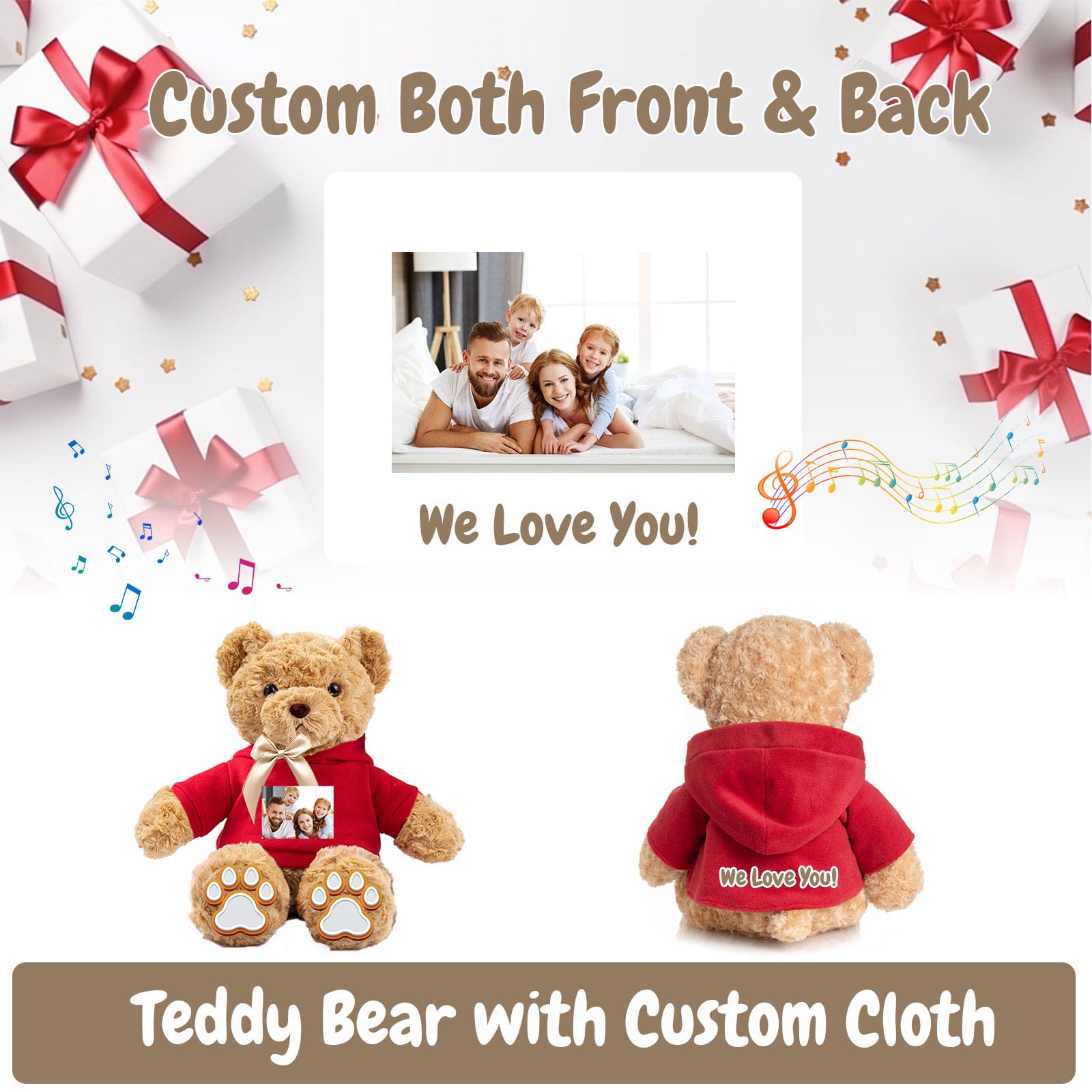 【Good Service】 Just express your cheers and encouragement to your friends family by adding your blessing or funny text on the teddy bear with Voice Recording personalized gifts for women men. If you have any questions, please feel free to let us know anytime, we will always take action immediately
