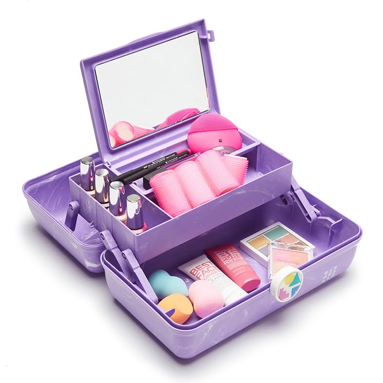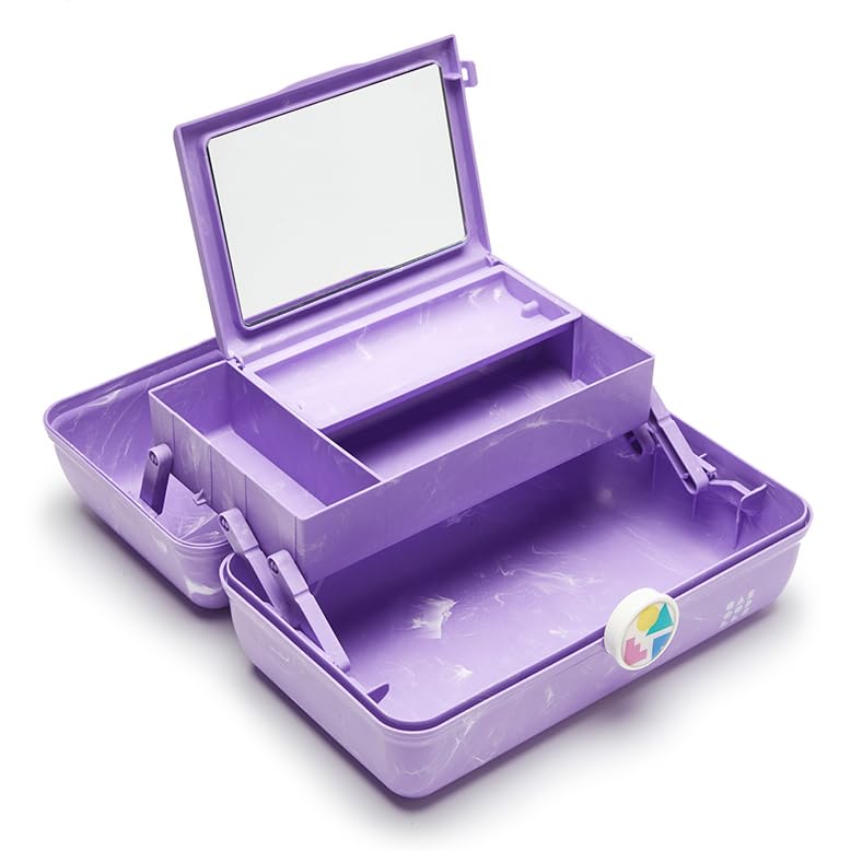 Description The classic On-The-Go Girl case offers a retro feel with practical design. Its top features an auto-open tray, flip lid with mirror, and a divided tray for organizing essentials. The spacious bottom accommodates larger items like makeup palettes and brushes. With a sturdy build and secure latch, it's ideal for travel. This versatile organizer suits makeup, skincare, hair accessories, school supplies, crafts, or any items you want to keep sorted. Its sleek design evokes nostalgic Caboodles' charm, appealing to both new and longtime fans.