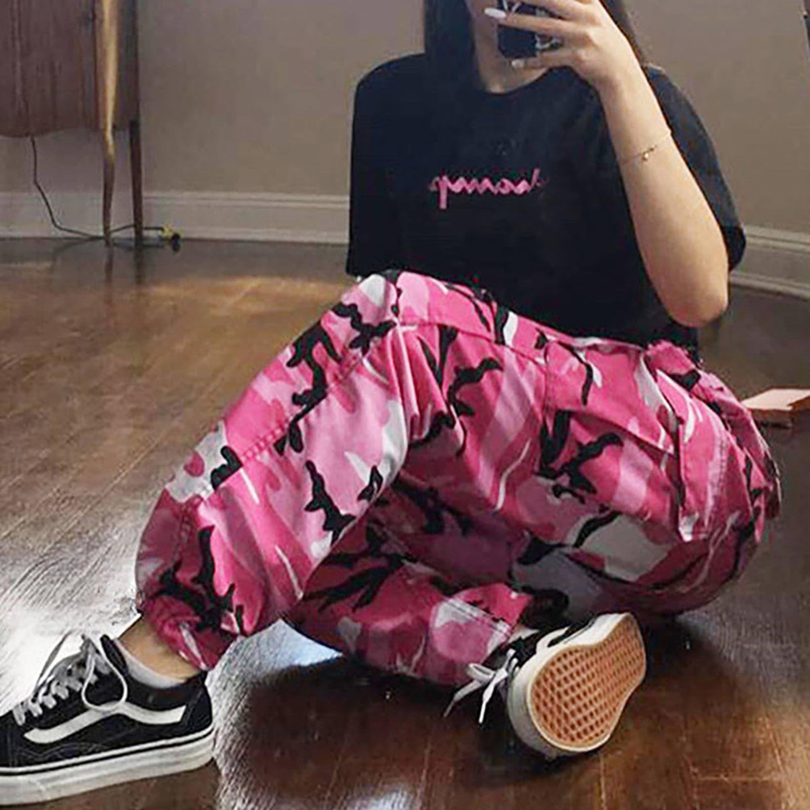 Fun and flattering y2k pants features: vibrant color, Indie clothes, stylish & comfy, relax fit, goth clothes, high waisted cargo camo pants, zipper fly, metal button closure, deep front slash pockets with 2 side pockets, 5 belt loops