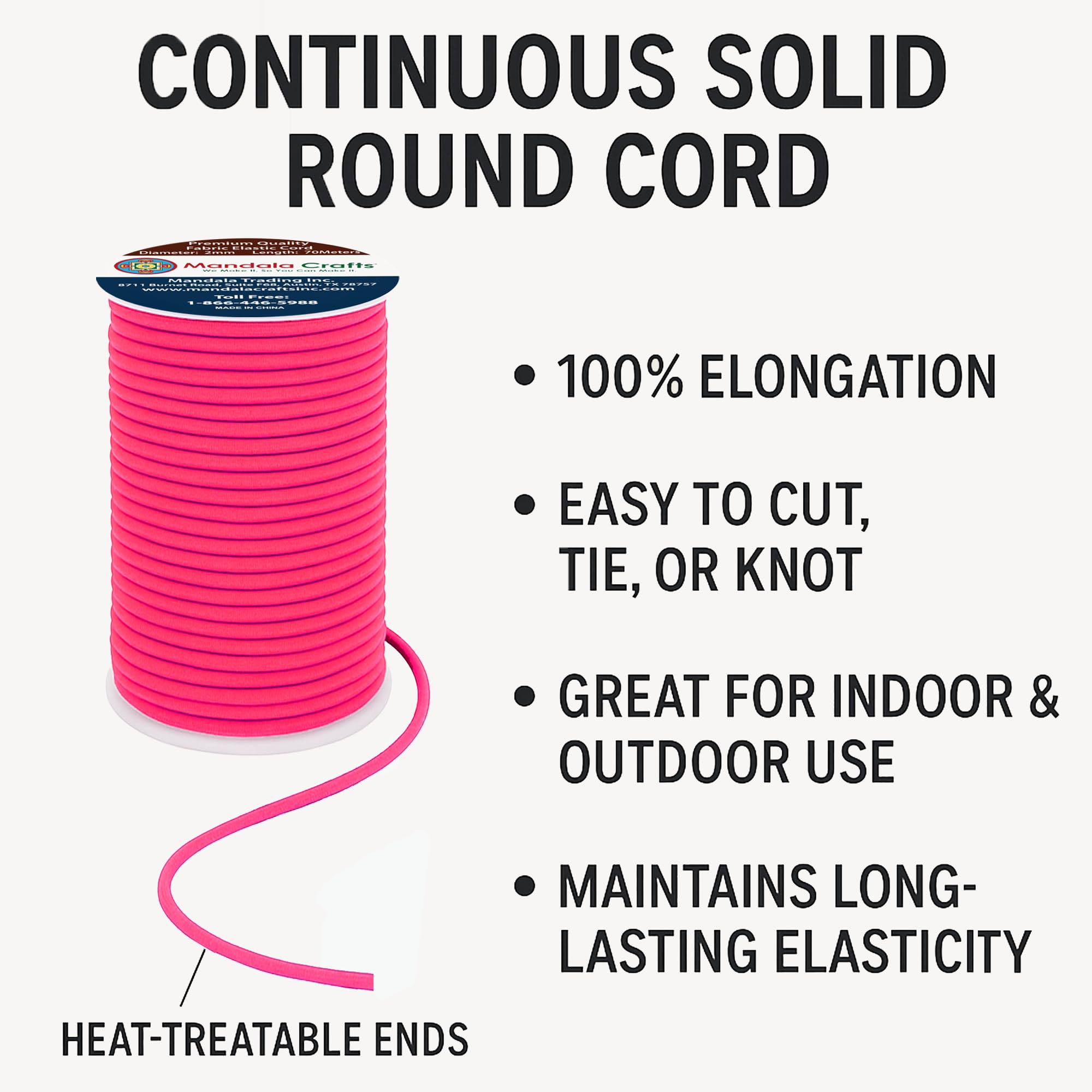 Bulk Stretchy Fabric Elastic Cord 2mm Stretch Strings Spool: The continuous 76-yard solid round cord elastic with heat treatable ends offers 100% elongation. Easy to cut, tie, or knot, the colored elastics cord for indoor & outdoor maintains long-lasting elasticity.