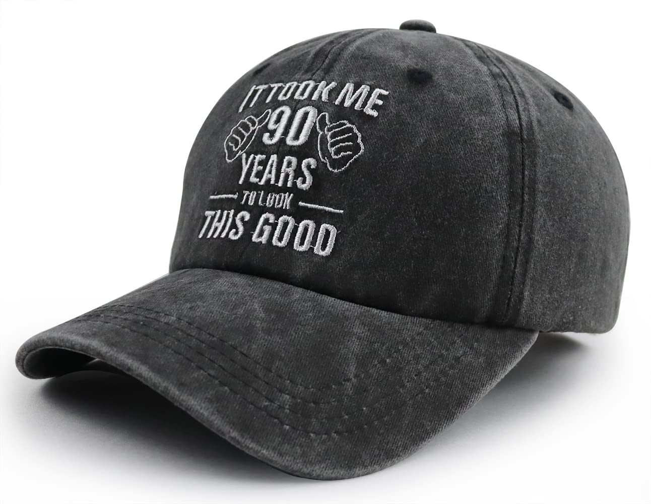 90th Birthday Gifts for Women Men: If You’ve Made It to 90 Years Old, then You Know a Thing or Two About Life! That’s Why We Say Cheers to Ninety Years with Our Vintage 1935 Hat. Our 90th Birthday Baseball Hat is a Perfect Gift to Show Her Your Appreciation and Best Wishes, and Make Her Him Feel Extra Special! They Can be Used for Many Years to Come and Will Not Fade or Scratch off Because They are Permanently Imprinted Which Reads It Took Me 90 Years To Look This Good.