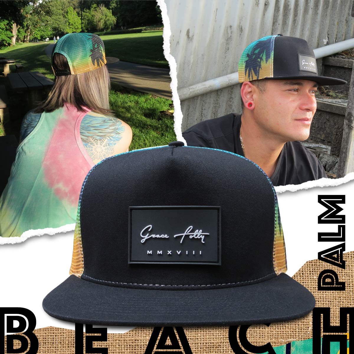 SMOOTH TRUCKER- This Palm Beach Grace Folly flat bill trucker hat is sure to impress! Structured 5 panel trucker cap with mesh back and adjustable snapback. Be the envy of your friends in this old school trucker.