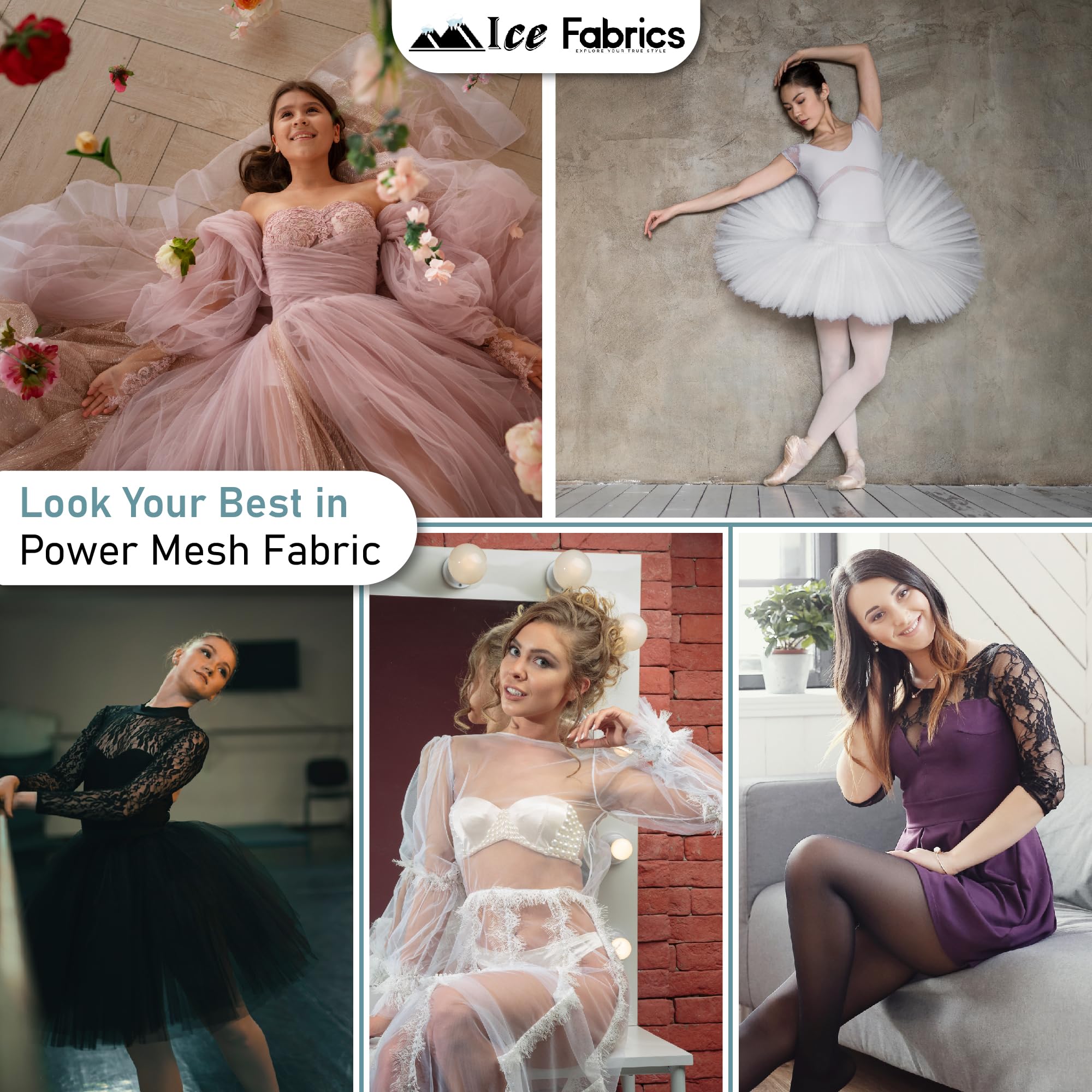 SHEER MESH FABRIC – Our 4-way stretch power mesh fabric offers exceptional flexibility and recovery, making it perfect for a variety of projects. From athletic wear to wedding dresses, it provides unmatched comfort and performance.