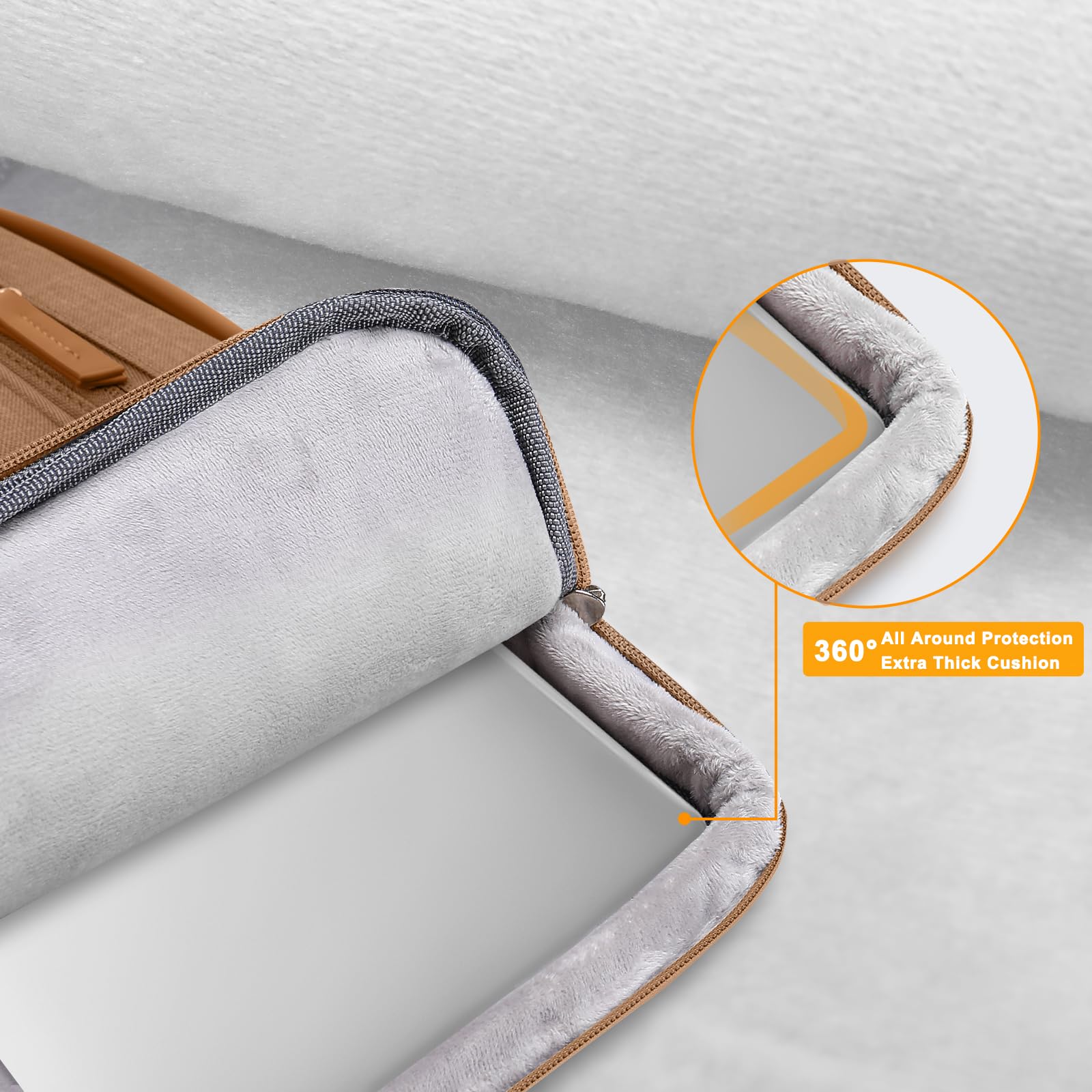 The Laptop Sleeve Case with 360 Degree Protection. 360 degree all around protective reinforced interior edge protect your laptop from any accidental dropping. Features foam padding layer and fluffy fleece fabric lining for bump and shock absorption and protection of your computer from accidental scratches. Side opening double zippers on the bag glide smoothly and allows convenient access to your laptop computer