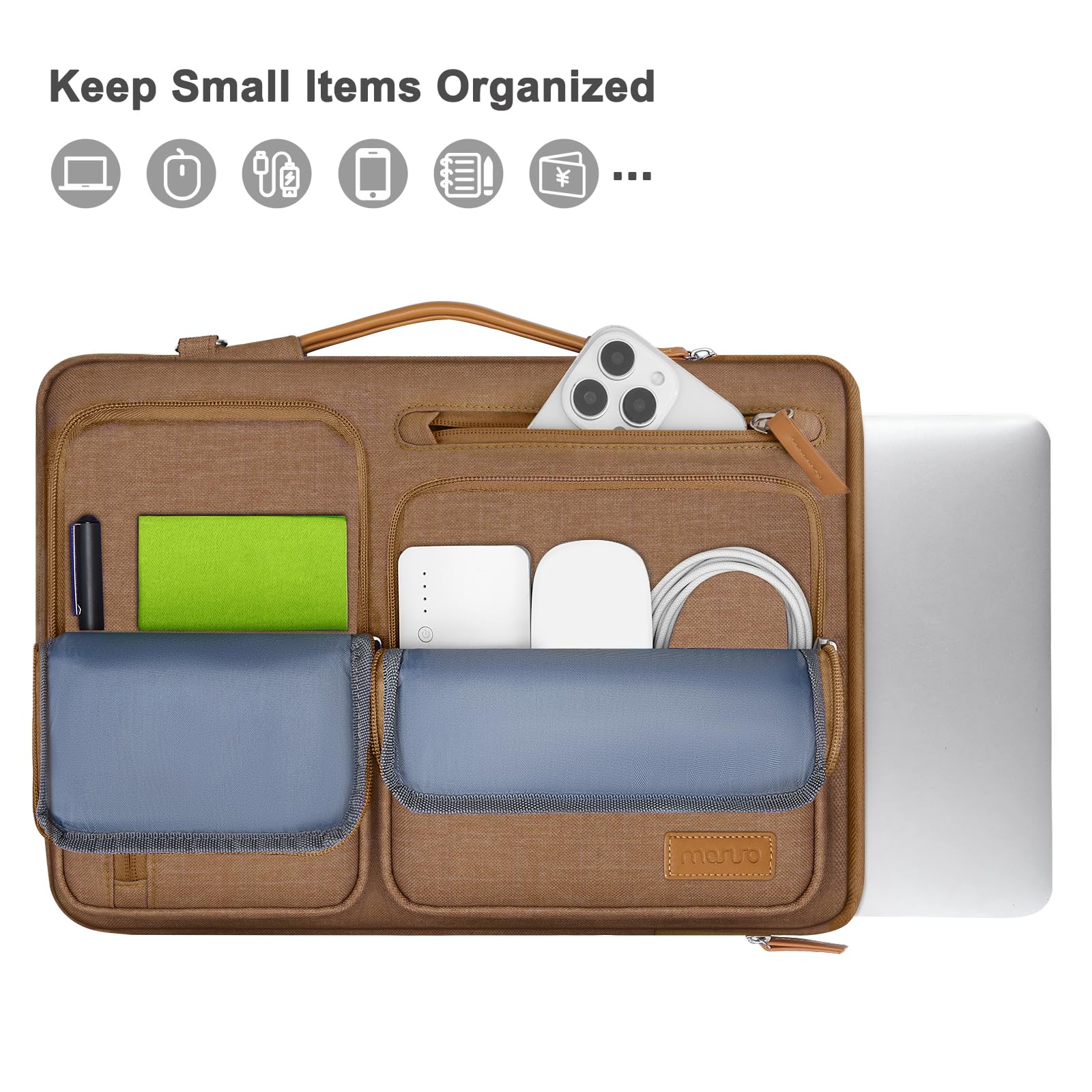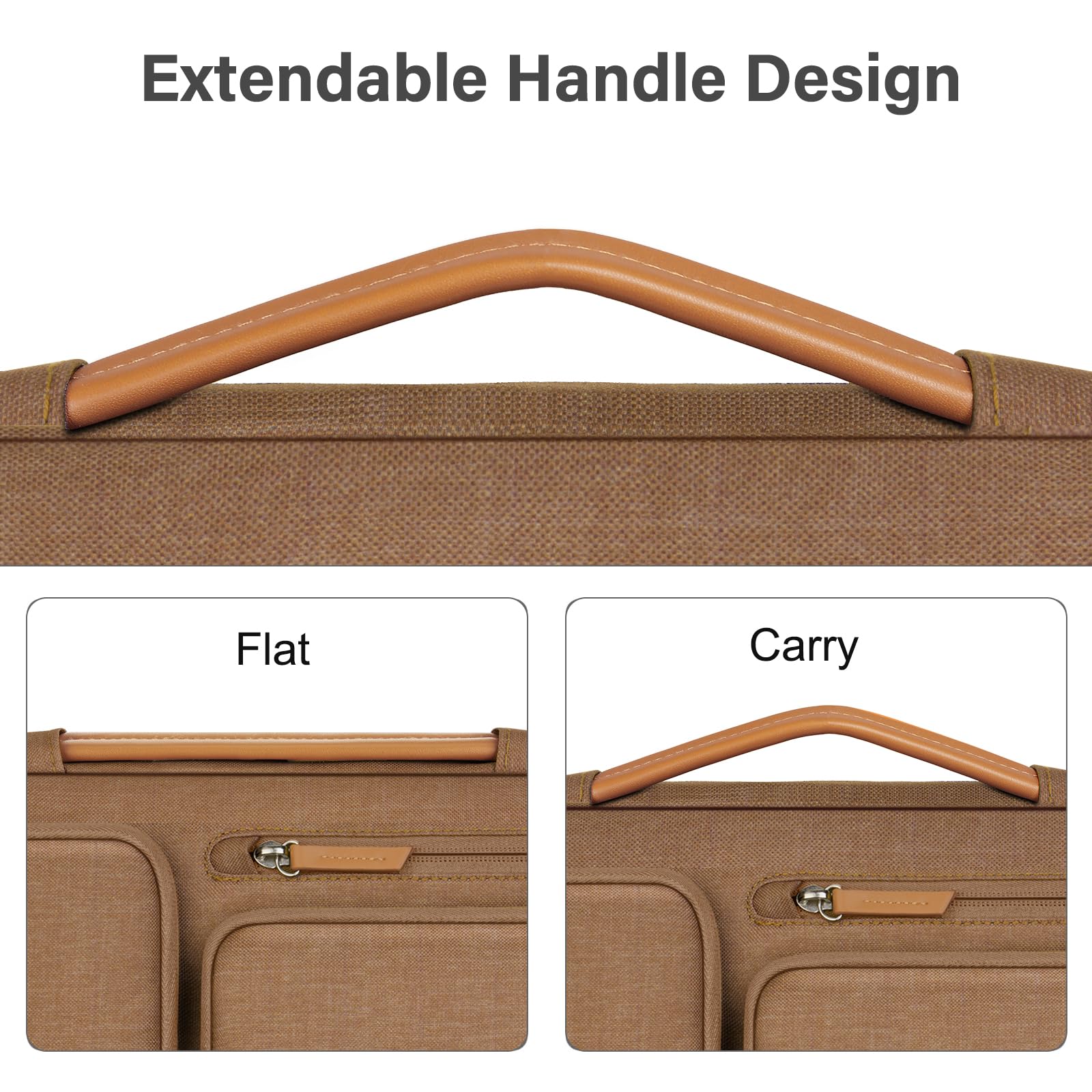 The Laptop Sleeve Bag with Handle & Adjustable Shouler Strap. Removable and adjustable padding shoulder strap with a shoulder pad varied from 28.54 inch to maximum 52.56 inch. You can use it as shoulder bag, laptop carrying case, sleeve bag, handle bag, messenger bag, crossbody bag and briefcase in whatever way you like. Extendable PU handle design makes it to carry your laptop around in comfort, you can also tuck away the handle