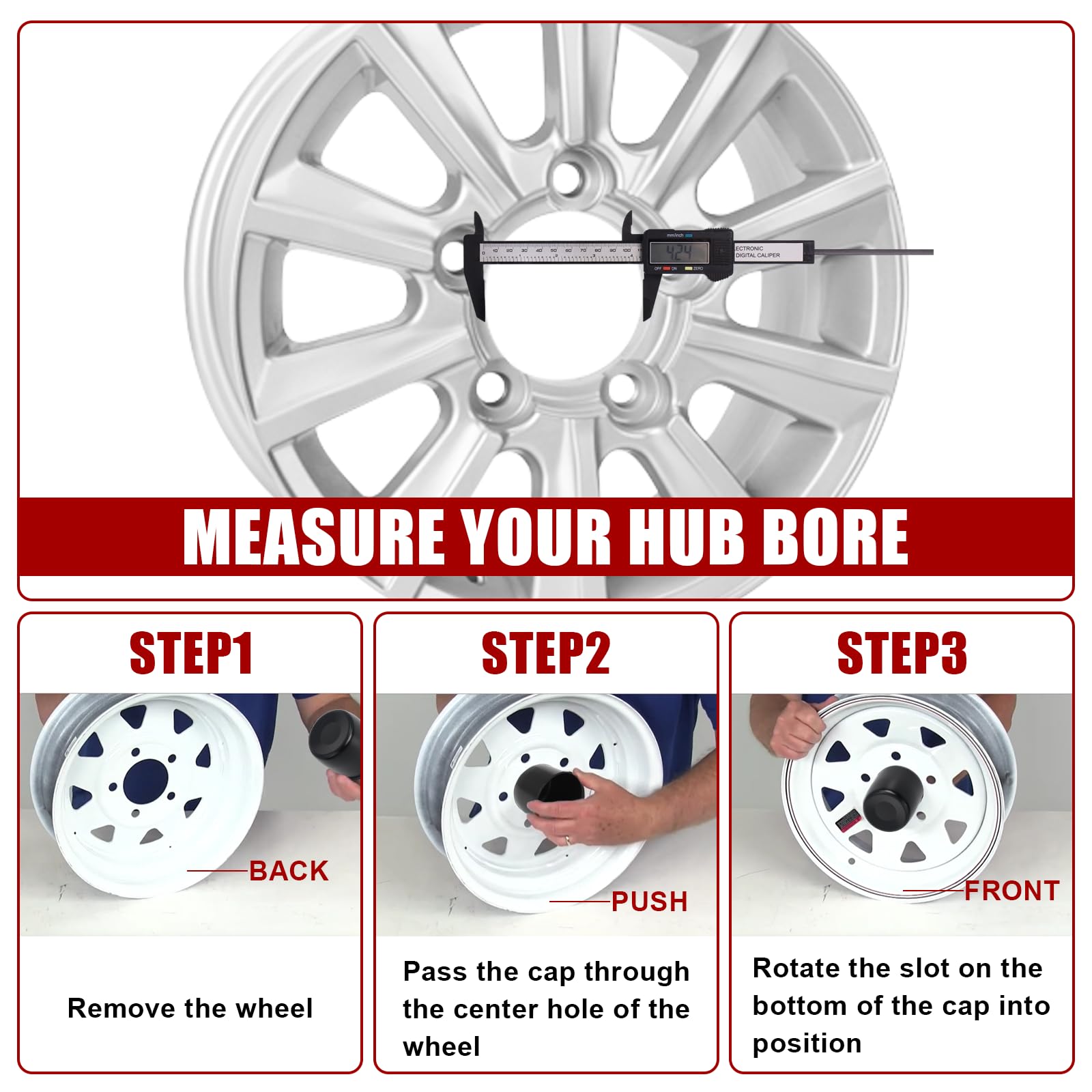 FOR 4.25” CENTER BORE: This chrome-plated push-thru center cap is designed specifically for 4.25” center bores. Ideal for trailer trucks, SUVs, or RV wheels. Use a digital caliper to check the center bore size before purchase to ensure proper fitment.