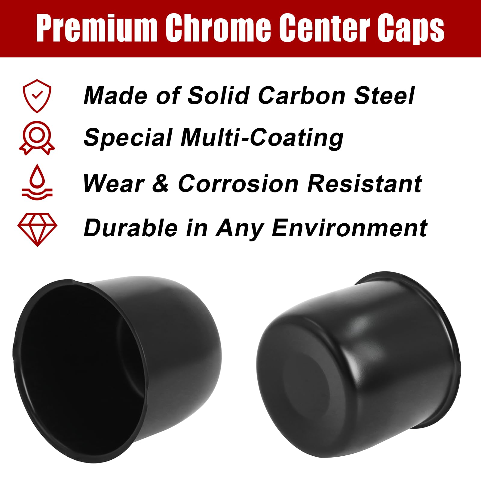 ATTRACTIVE DESIGN: The 4.25" center cap features a special multi-coated surface that provides excellent water and rust resistance. This makes it durable in any environment, while also giving your vehicle a sleek, attractive look with a unique highlight on the wheel.