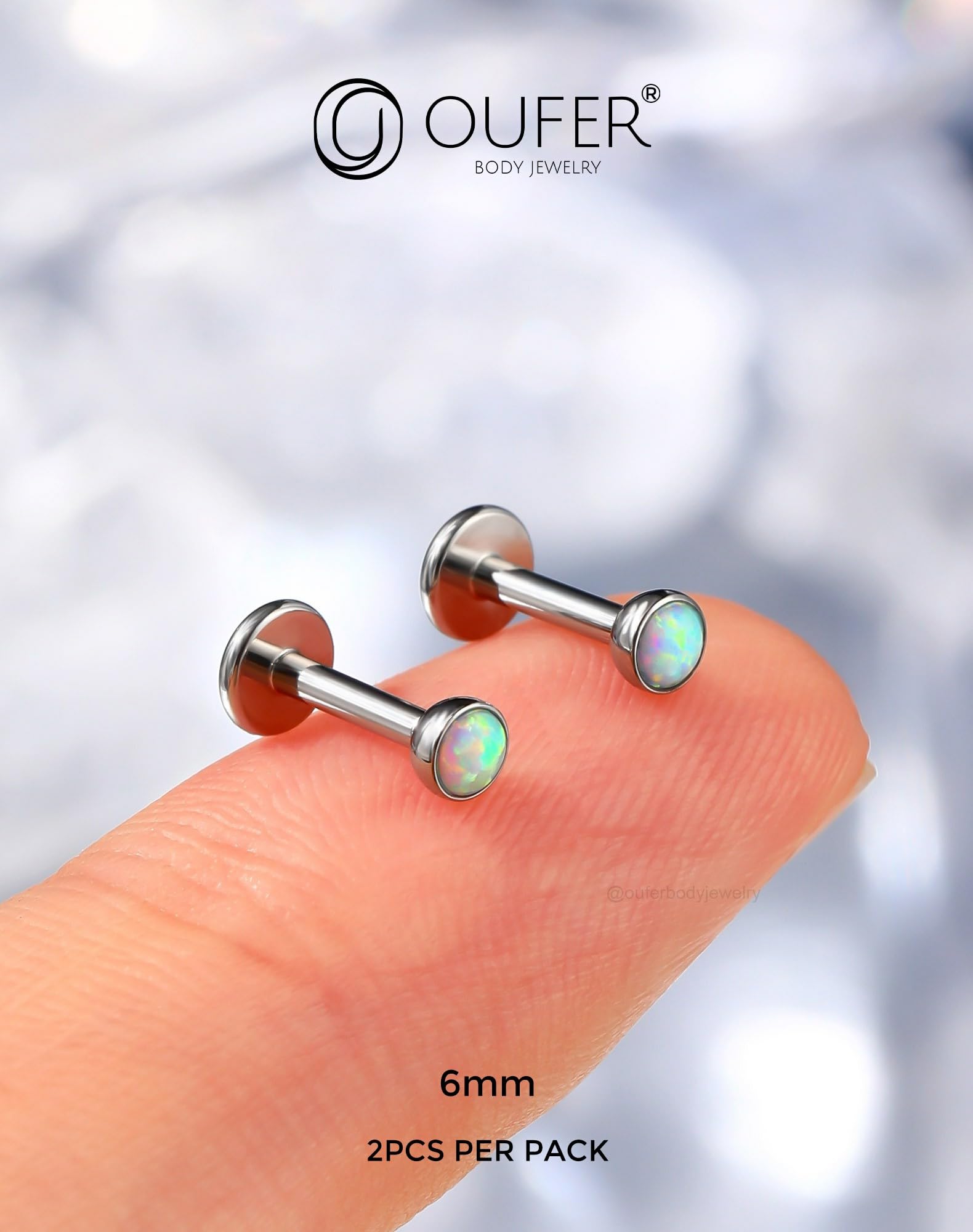 OUFER 2PCS Lip Rings 16G, G23 Solid Titanium Lip Rings Studs Flat Back, Threadless Push in Opal Lip Labret Medusa Monroe Tragus Helix Cartilage Piercing Jewelry for Women Men-6MM