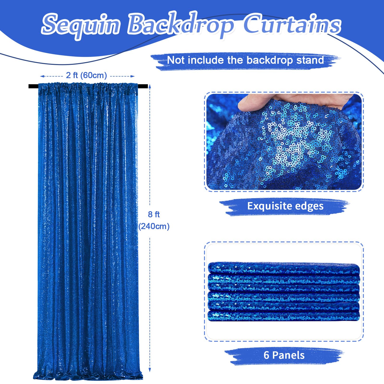 Sequin Backdrop Curtain: 6PCS 2FT Width By 8FT Height Sequin Backdrop with a 4-inch rod pocket on the top for easy hanging.