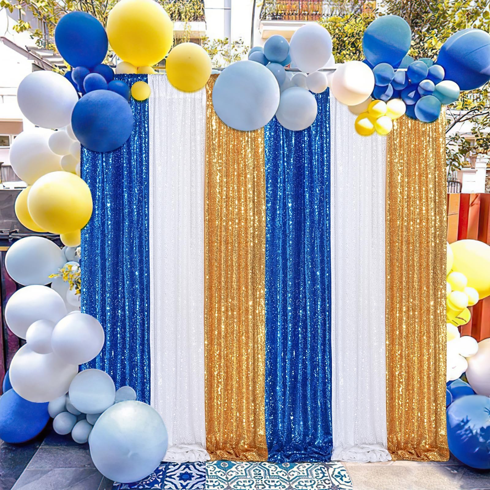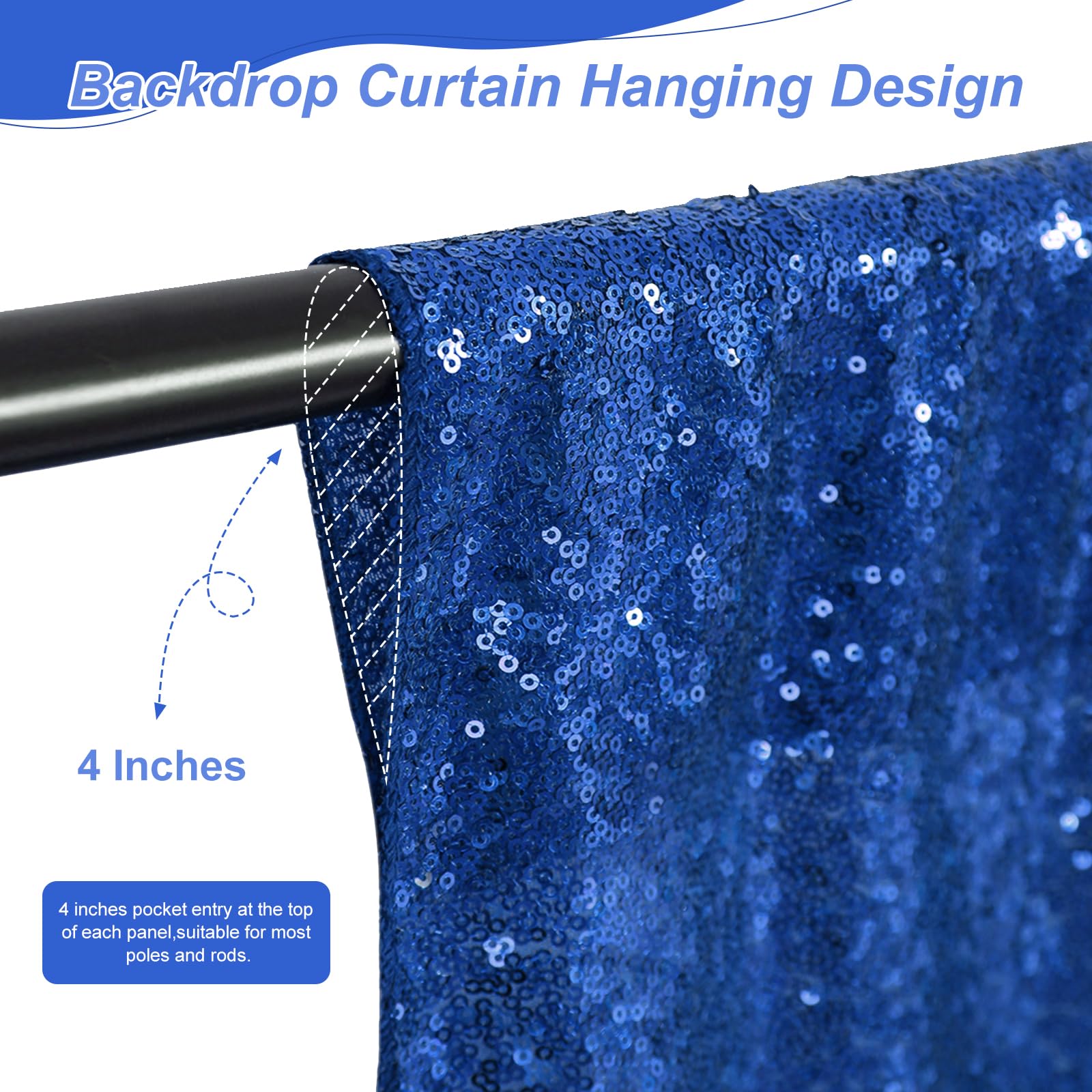 Navy Backdrop Curtain:The exquisite backdropcurtain is paired with dazzling sequins.The fabric is thick, wrinkle-free, and reflects light beautifullyperfect for photo booths, weddings, birthdays, or stage decor.