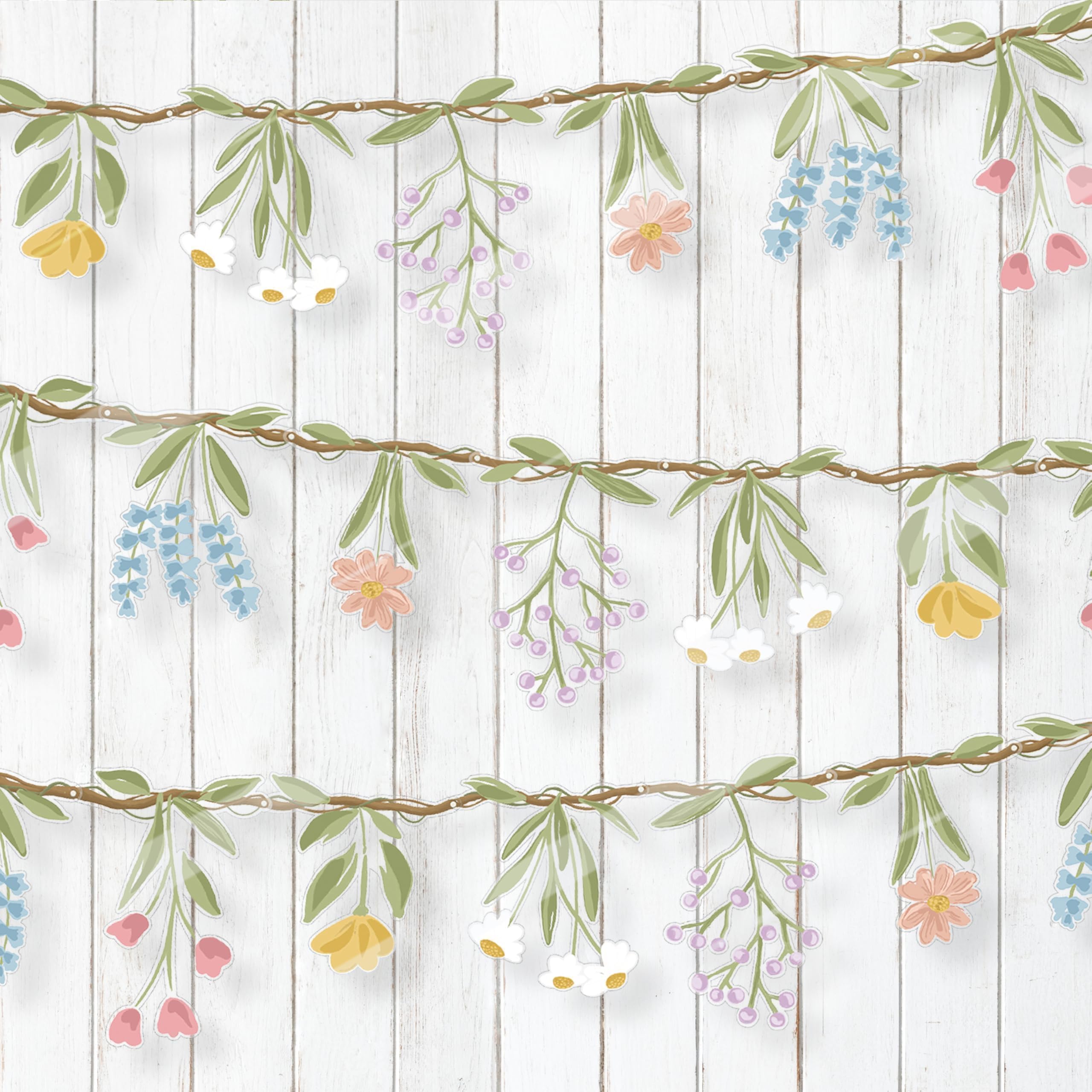 Package:This set includes two luxurious 7.9-foot plastic flower banners, each bursting with a vibrant mix of wildflowers, lush greenery, and delicate branches for a naturally enchanting look. The wildflowers are permanently attached, ensuring a tangle-free, hassle-free decorating experience. These flower garlands are perfect for creating floral backdrops, spring-themed banners, table runners, or ceiling draping, instantly transforming any space into a blooming paradise or botanical theme party.