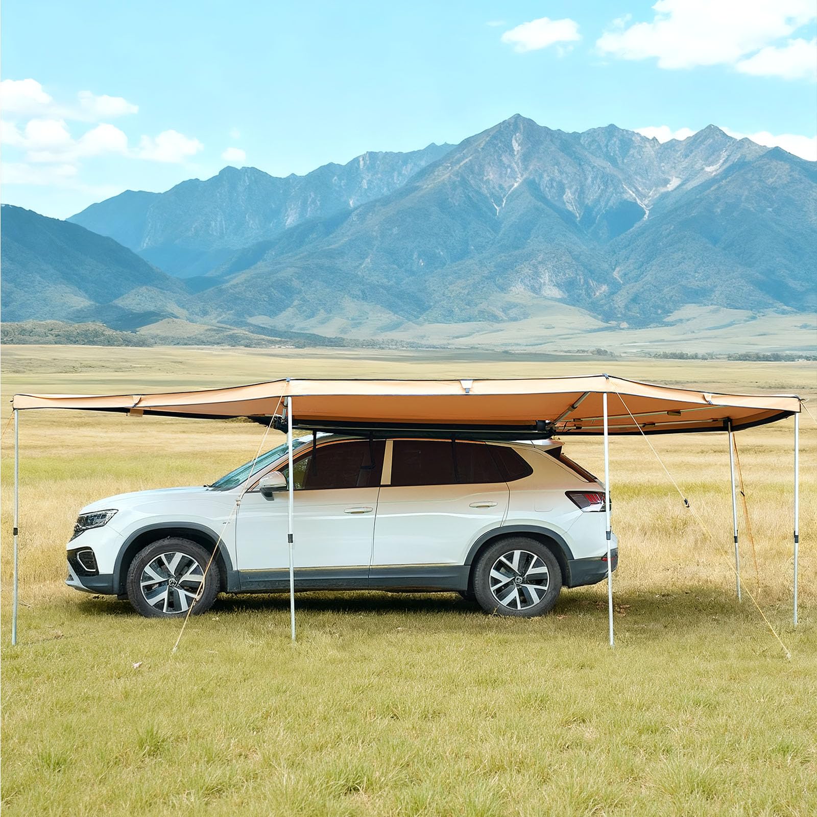 Wide Coverage: This vehicle awning offers a 270° canopy measuring 18.7 x 6.4 ft, covering 117.33 sq.ft / 10.9 ㎡ and standing 6.89 ft tall—perfect for family camping, picnics, and outdoor parties