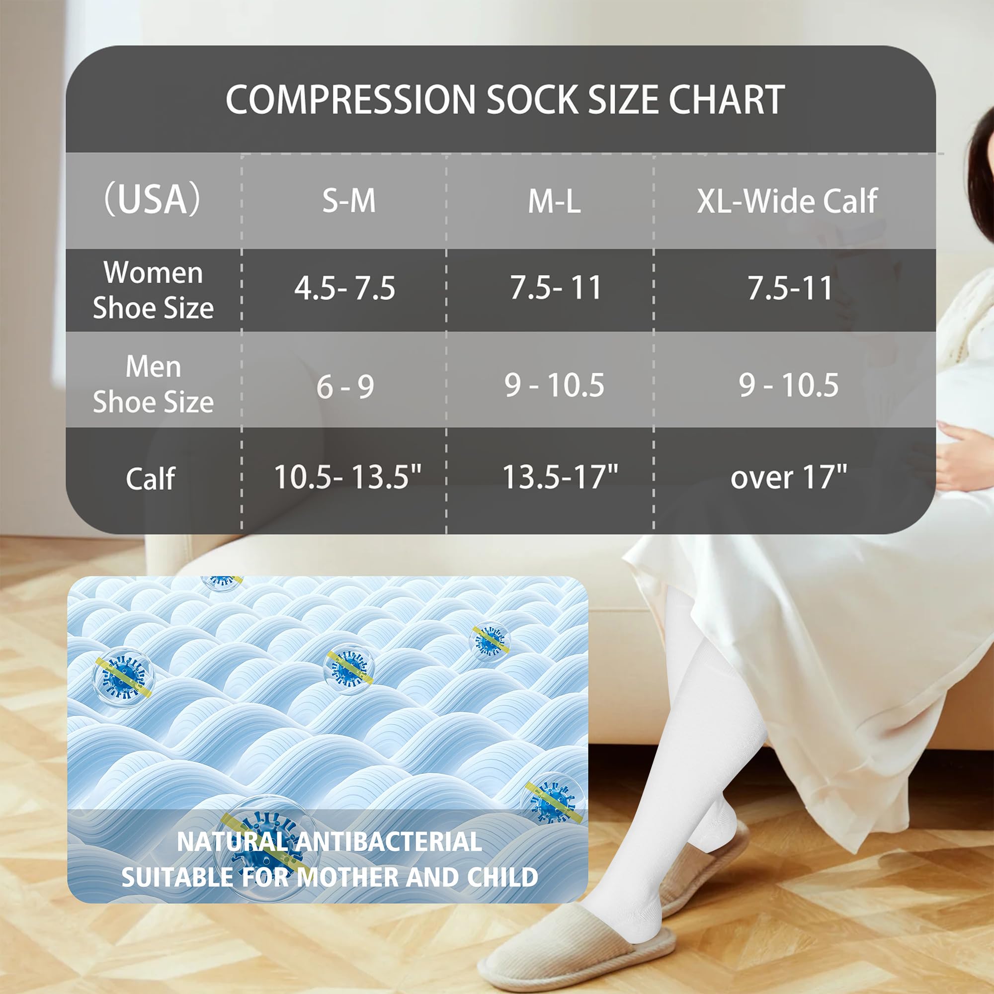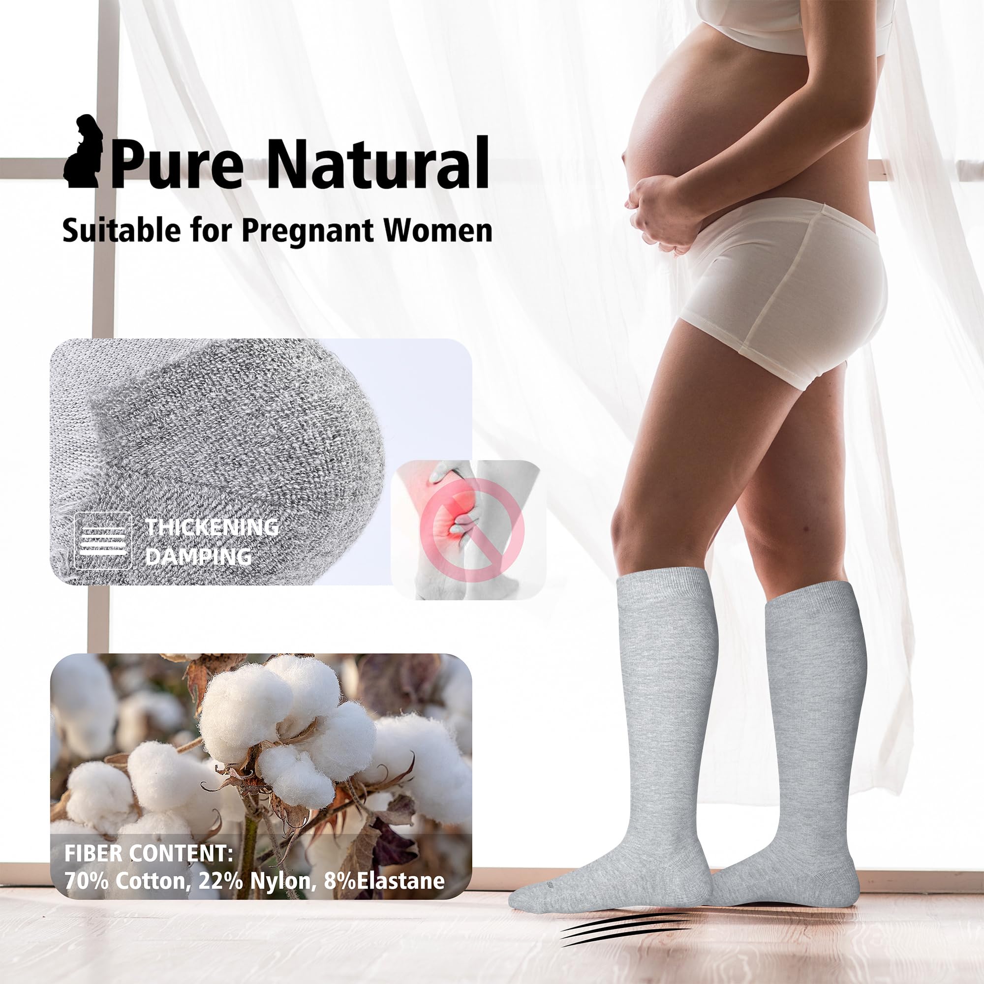 Multifunctional Compression Socks: Compression socks for prenancy&nurses effectively address leg-related issues, prevent blood clots and alleviate fatigue, ease swelling and pain during pregnancy, and provide support to eliminate fatigue and boost leg vitality. They are suitable for nurses, pregnant women, those with long shifts, travel and flight.