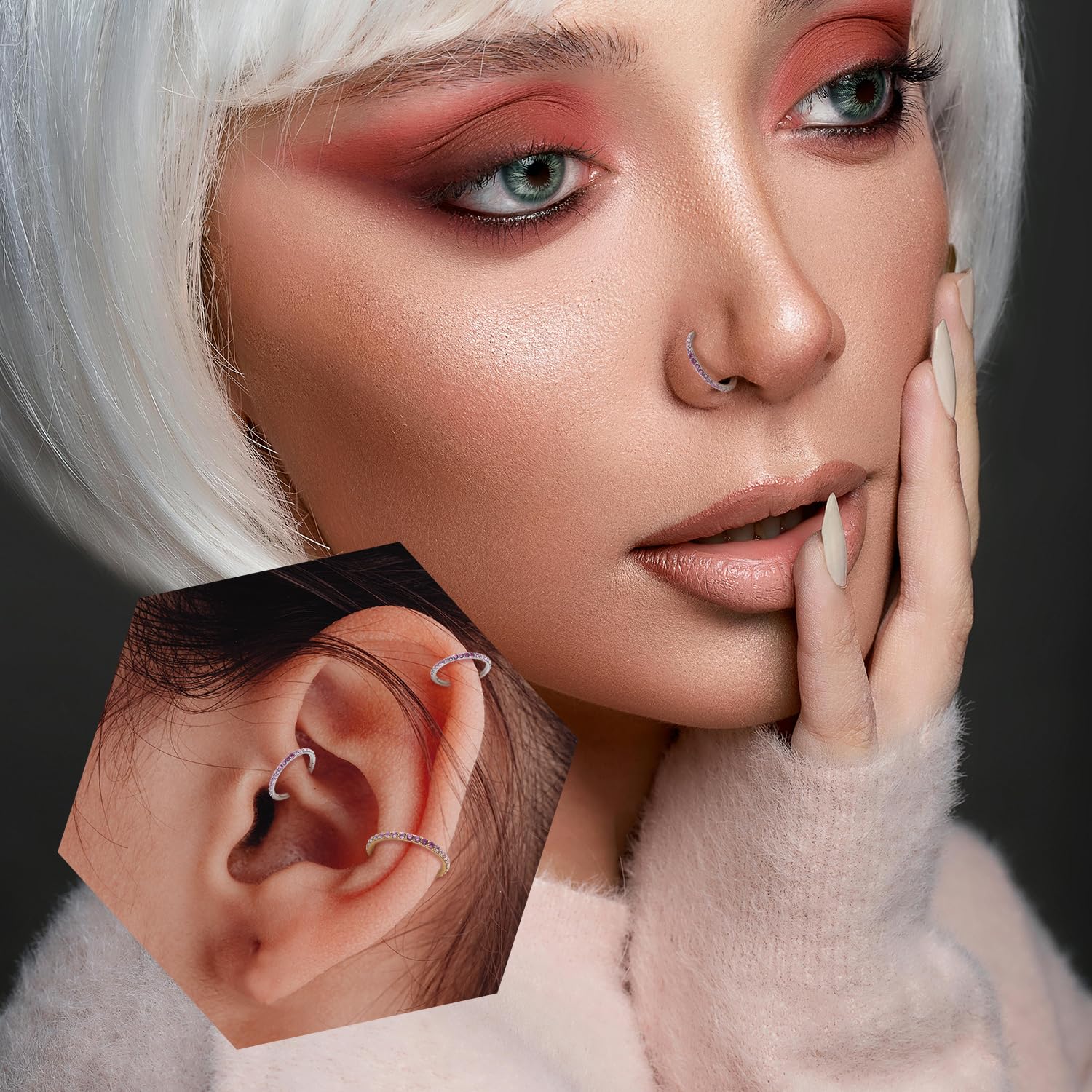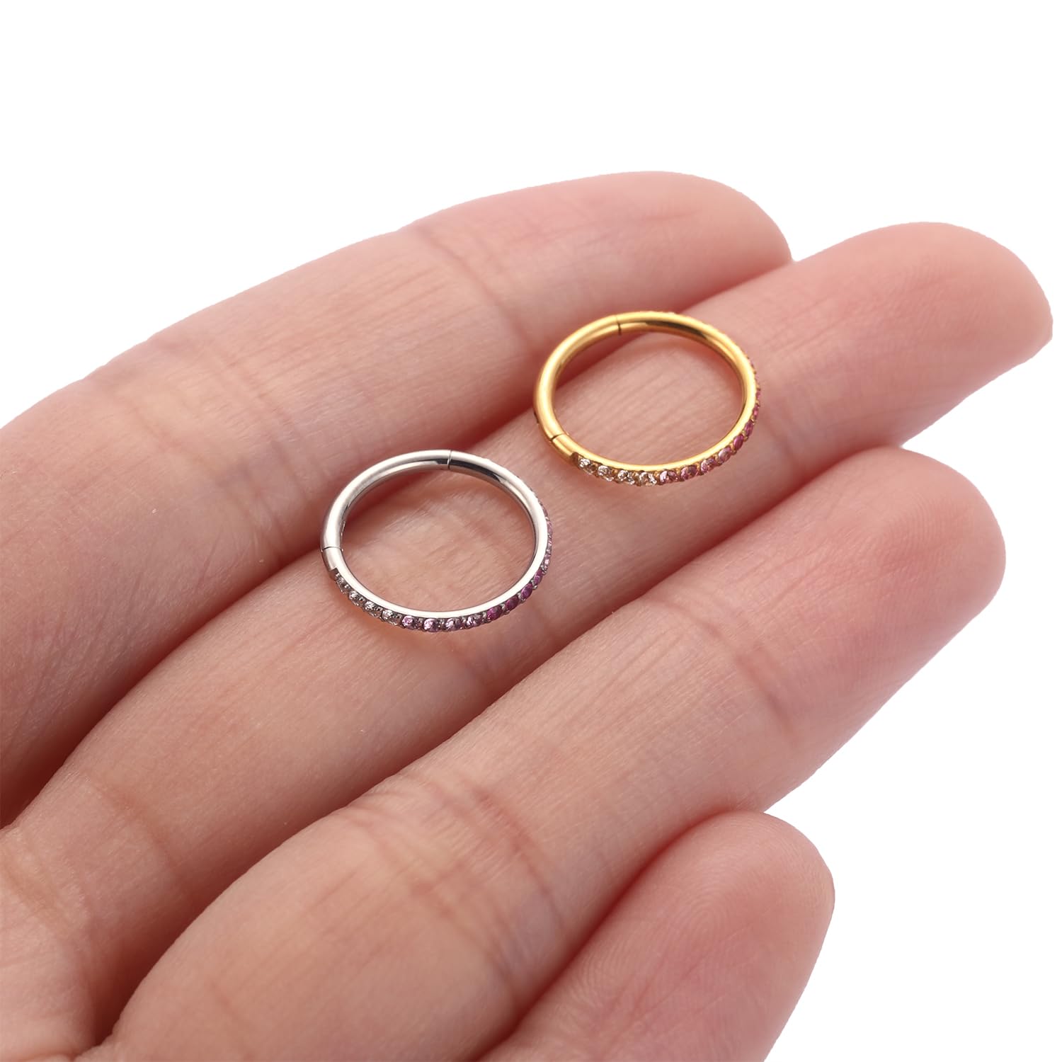 Easy to Use: The nose hoop is easy to insert by hand without a tool. The closure is seamless. And it's still tight after long-term use, needn't to worry about lost when working, walking or exercising