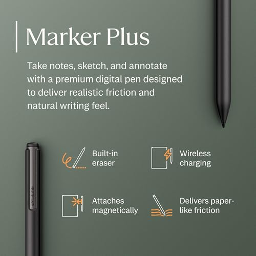 WHAT'S INCLUDED - reMarkable Paper Pro Move, an ultraportable digital paper tablet with a 7.3" Canvas Color display, Marker Plus, 6 spare Marker tips, USB-C cable. Marker tips last up to two months each, but may vary with writing style and pressure.